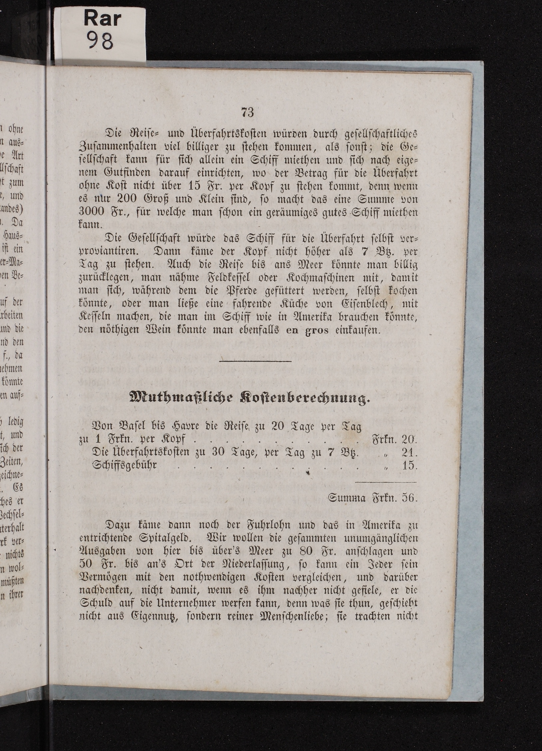 Muthmaßliche Kostenberechnung
