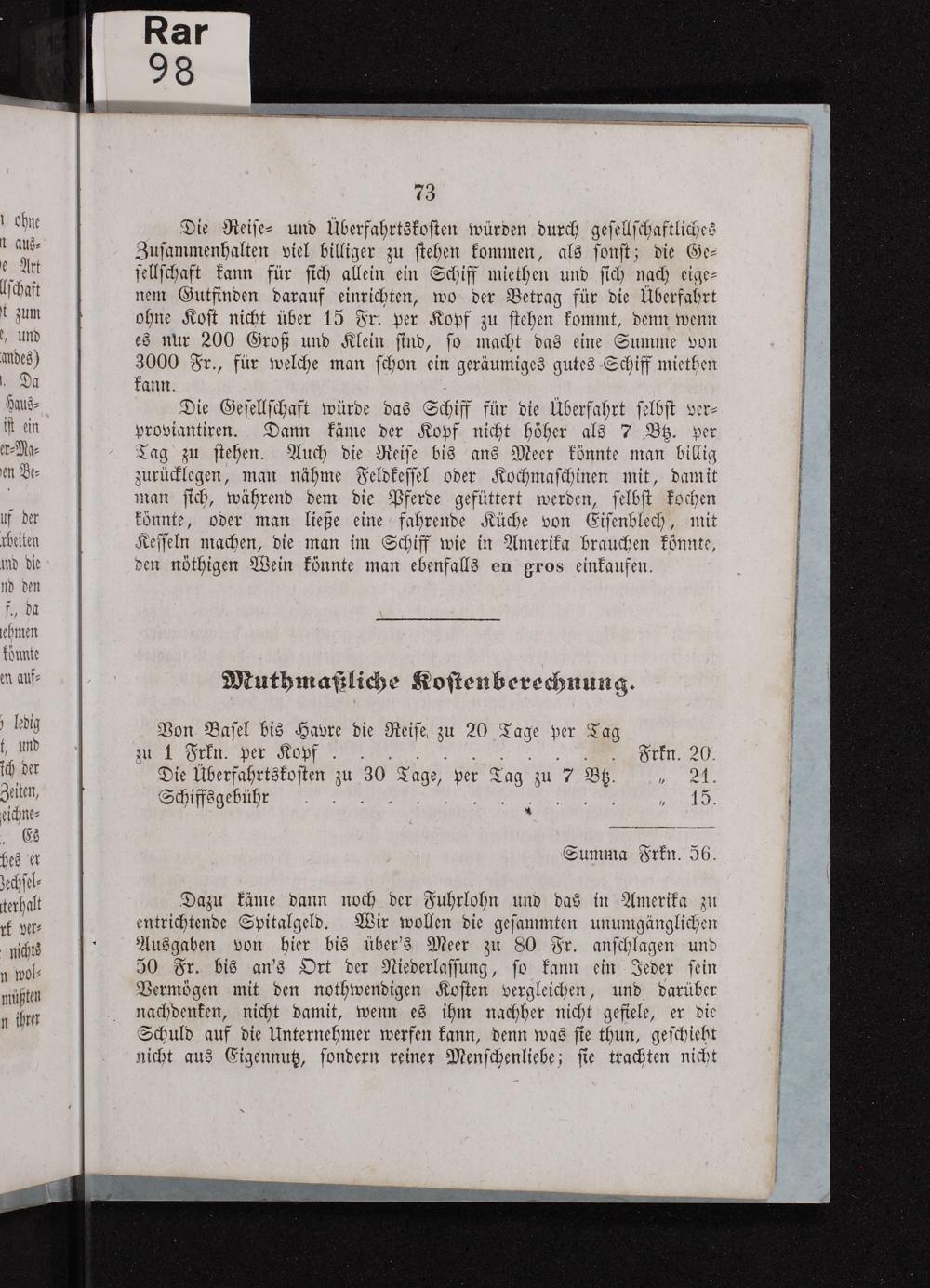 Vereinsstatuten der Auswanderungsgesellschaft zur Gründung von Neuhelvetia im Staate Missouri in Nordamerika
