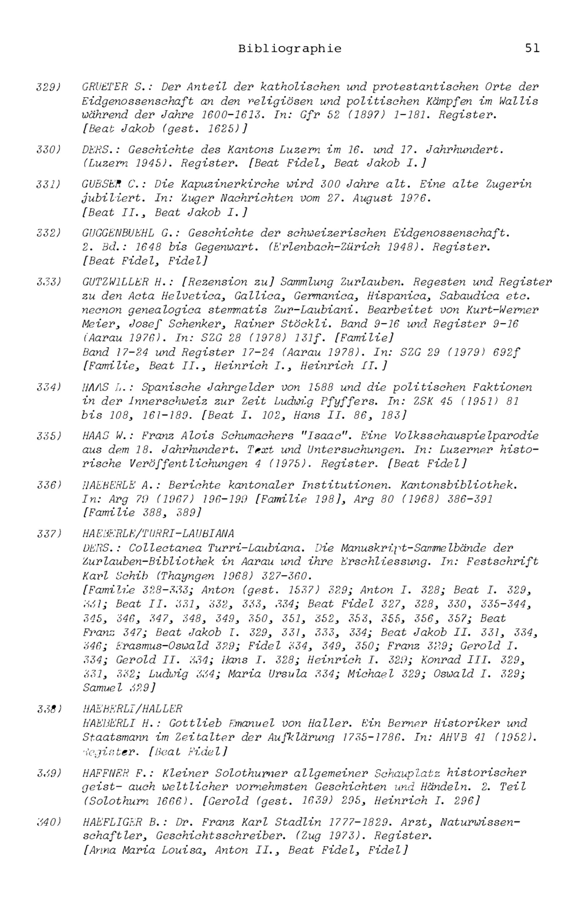 4. Zurlauben - Bibliographie