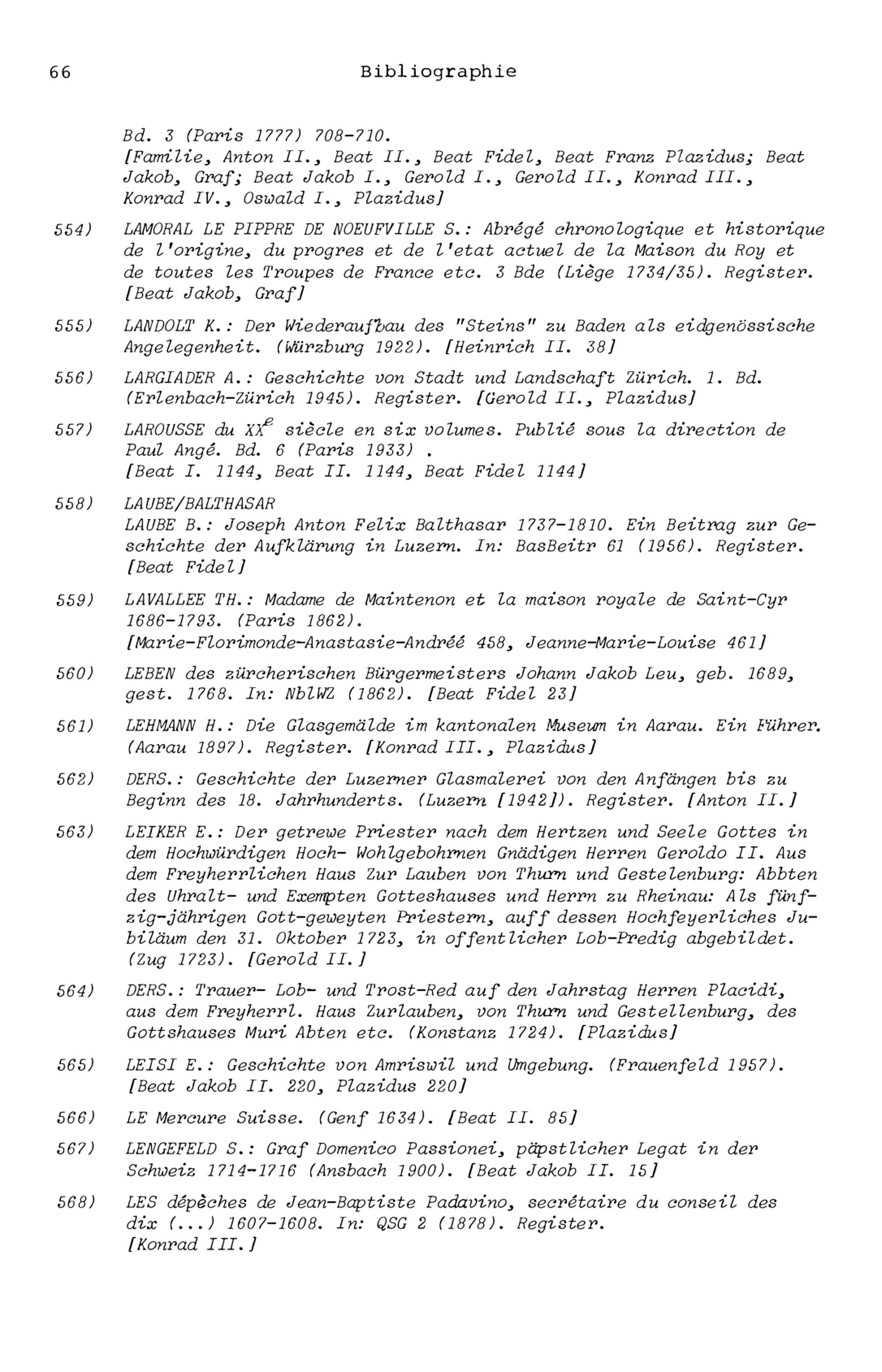 4. Zurlauben - Bibliographie