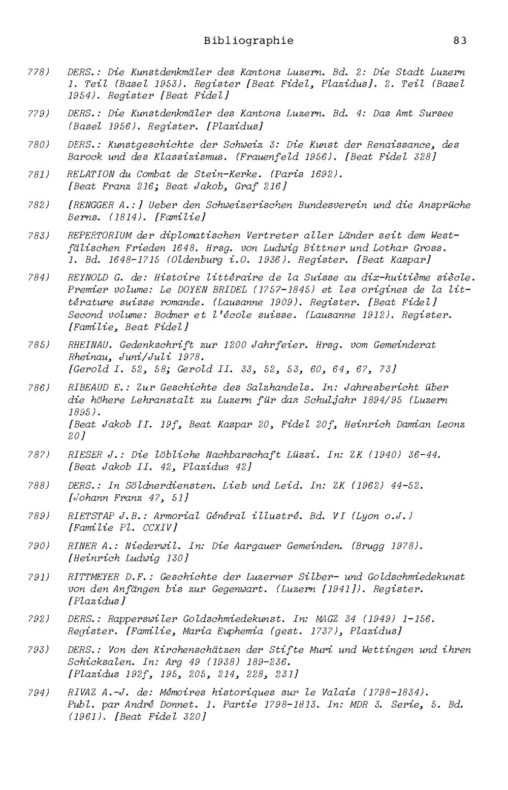 4. Zurlauben - Bibliographie