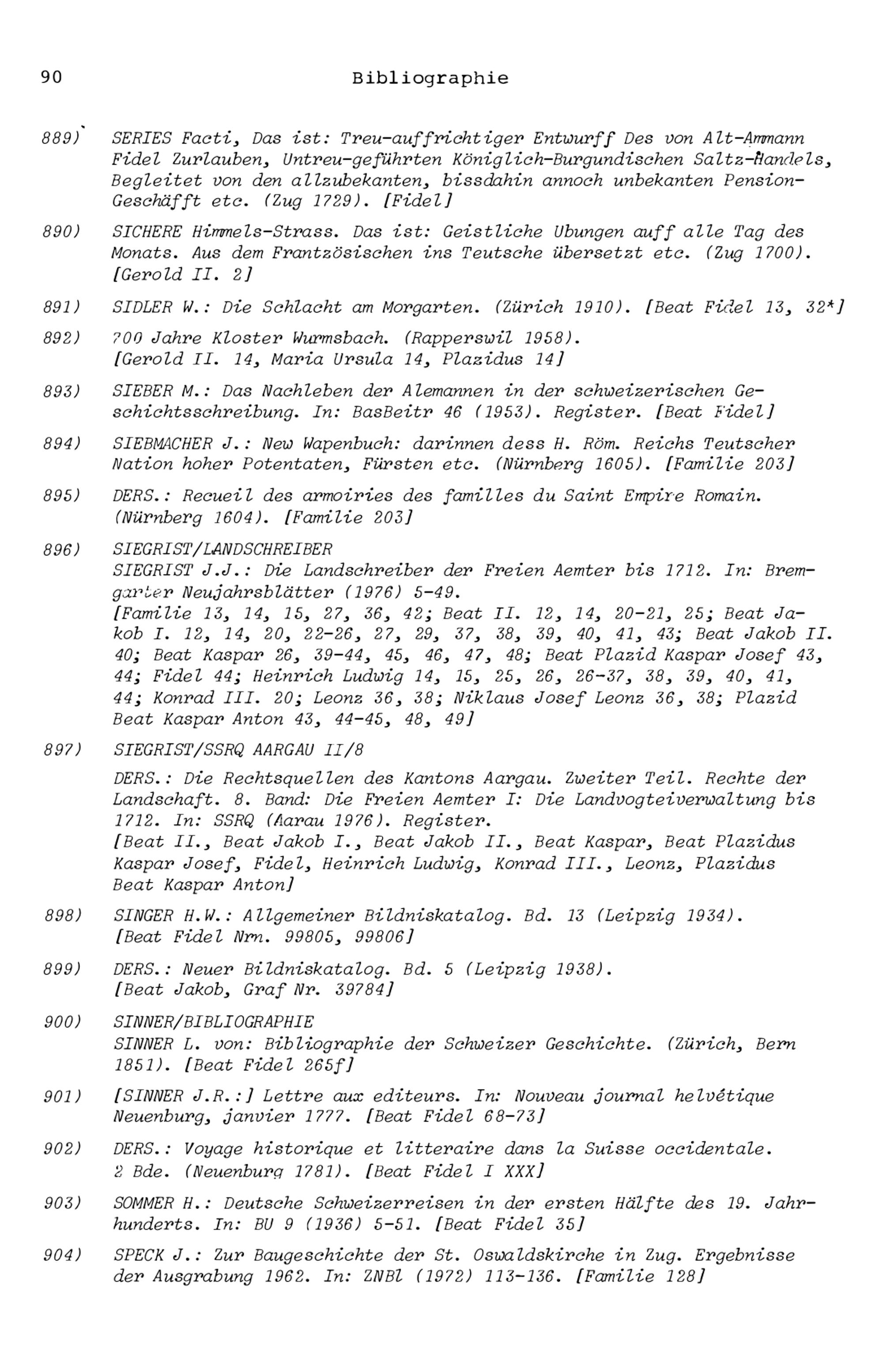 4. Zurlauben - Bibliographie