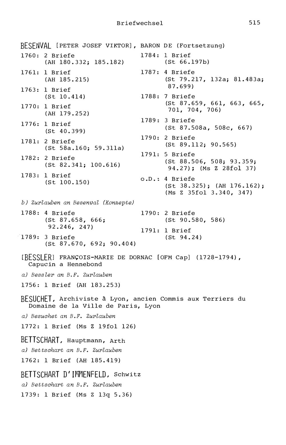 7. Der Briefwechsel von Beat Fidel Zurlauben