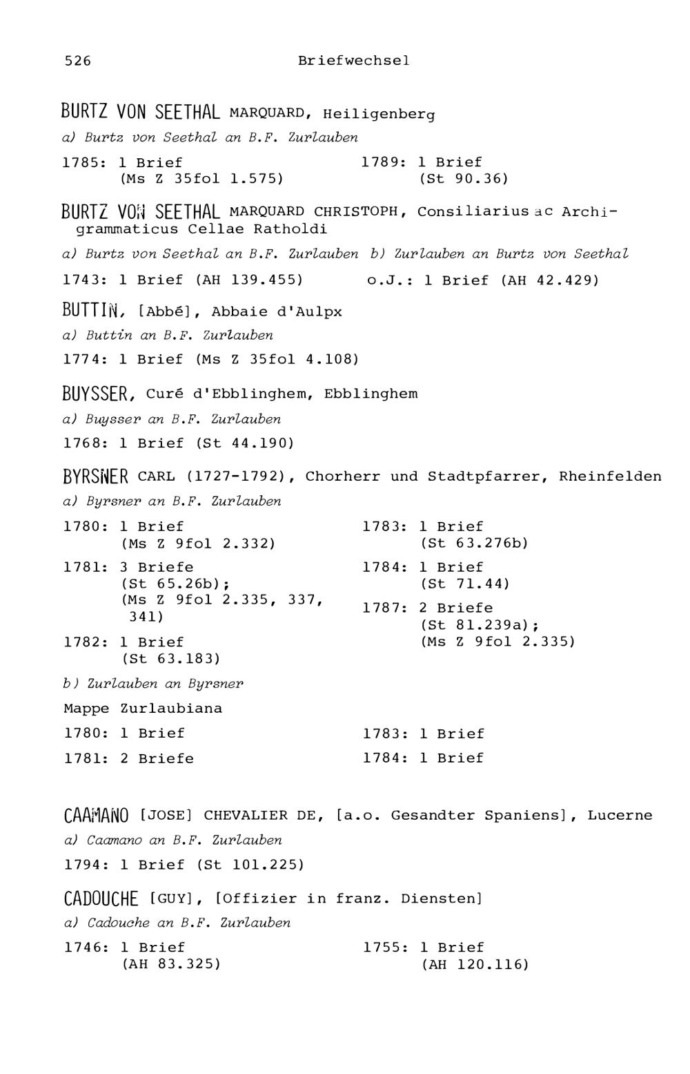 7. Der Briefwechsel von Beat Fidel Zurlauben