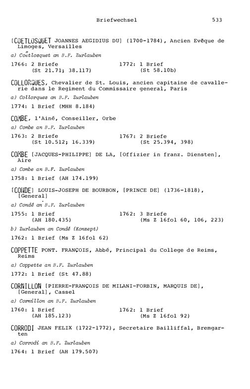 7. Der Briefwechsel von Beat Fidel Zurlauben