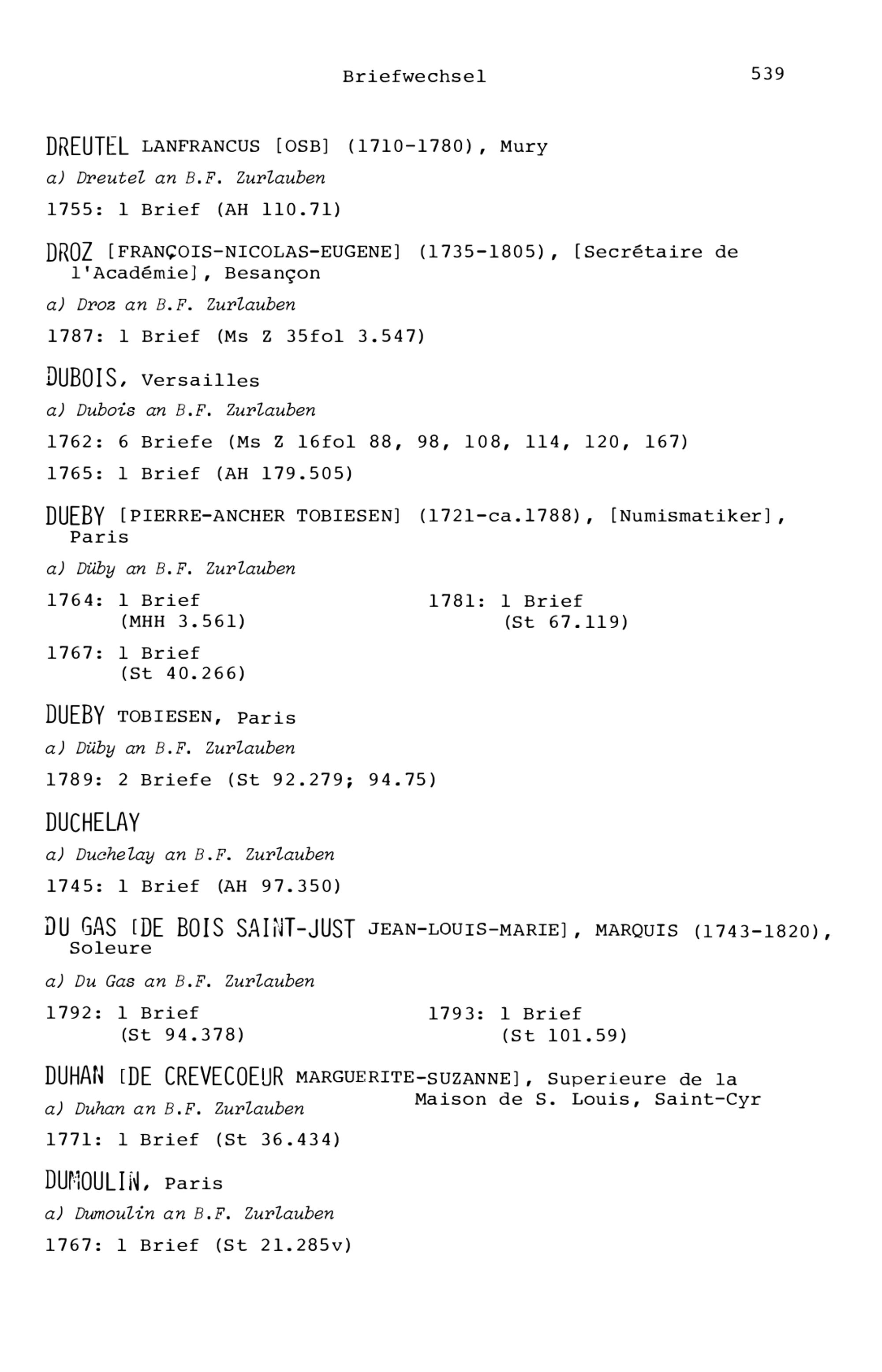 7. Der Briefwechsel von Beat Fidel Zurlauben