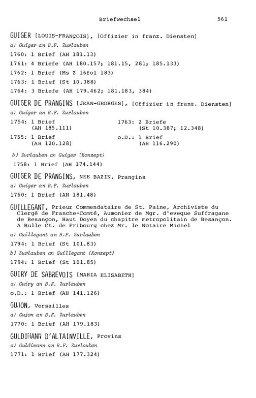 7. Der Briefwechsel von Beat Fidel Zurlauben