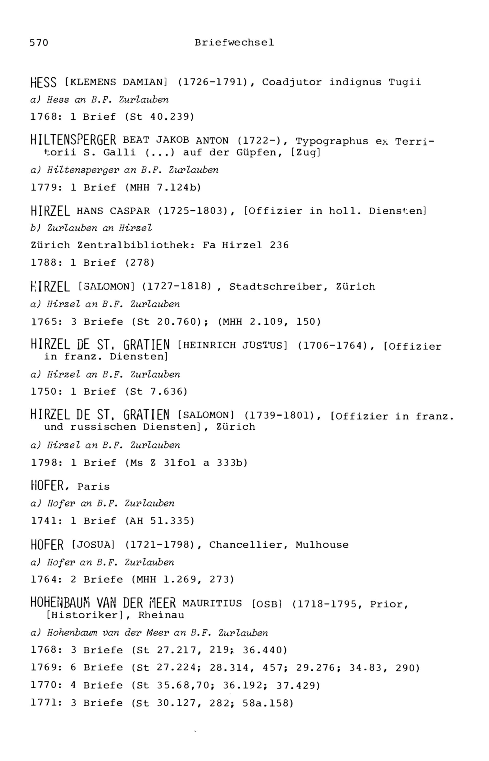 7. Der Briefwechsel von Beat Fidel Zurlauben