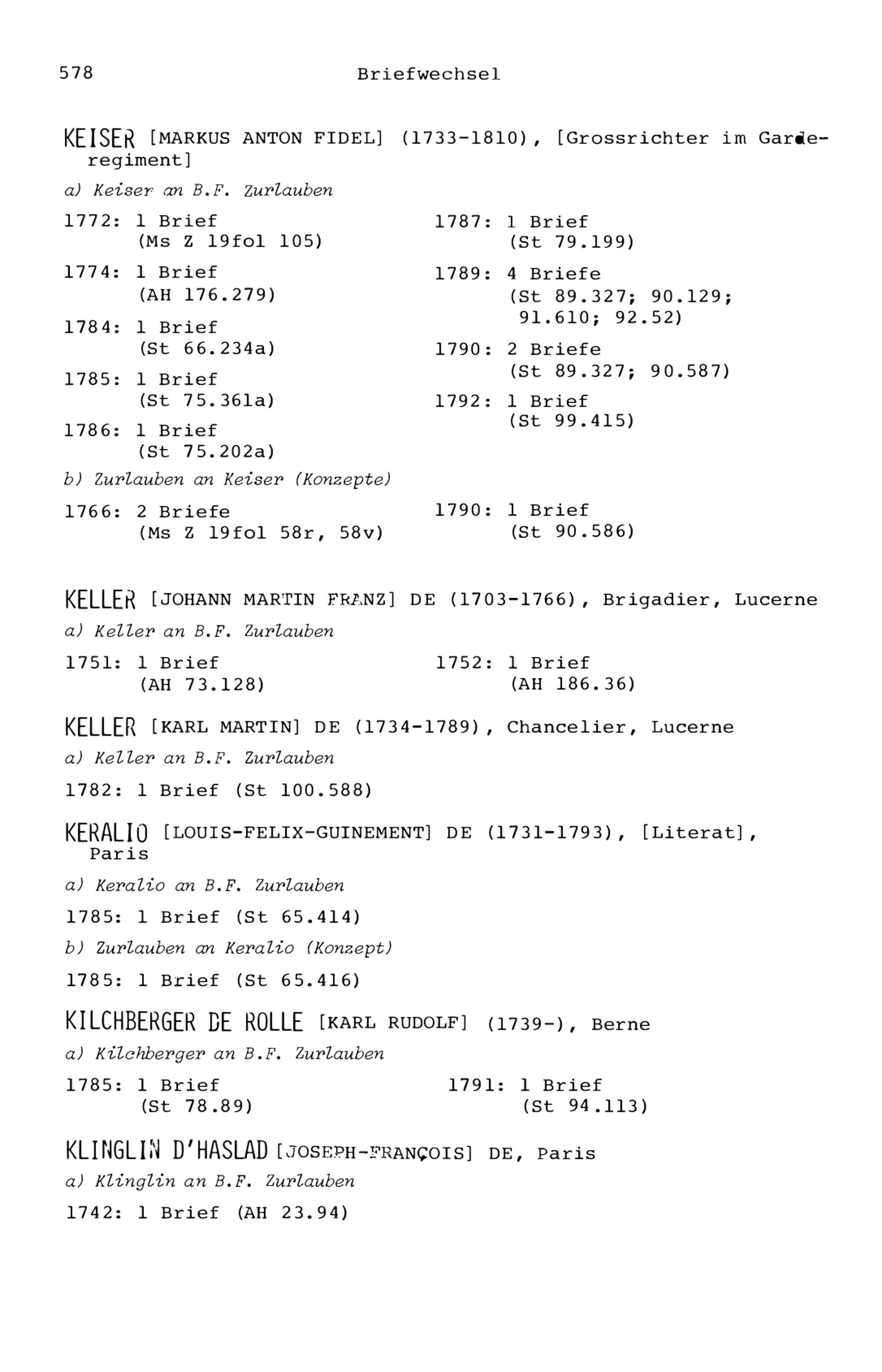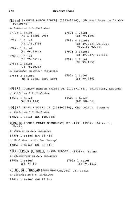 7. Der Briefwechsel von Beat Fidel Zurlauben