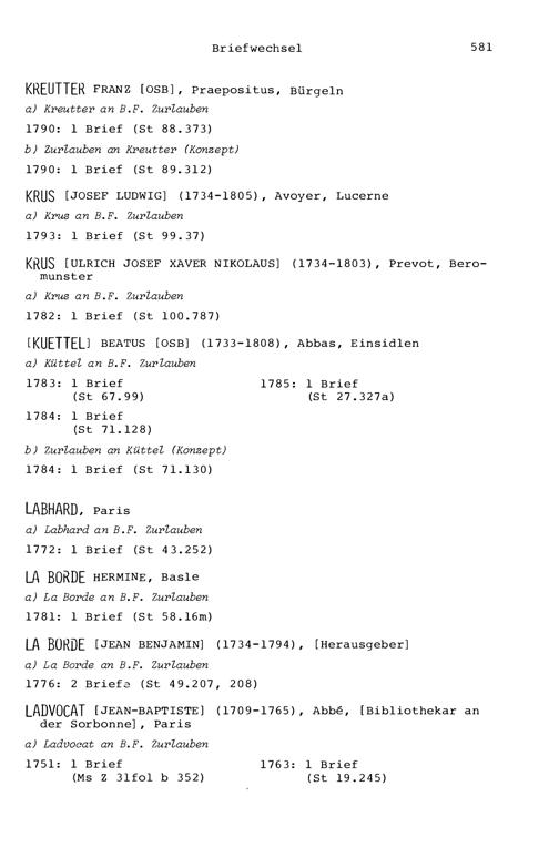 7. Der Briefwechsel von Beat Fidel Zurlauben