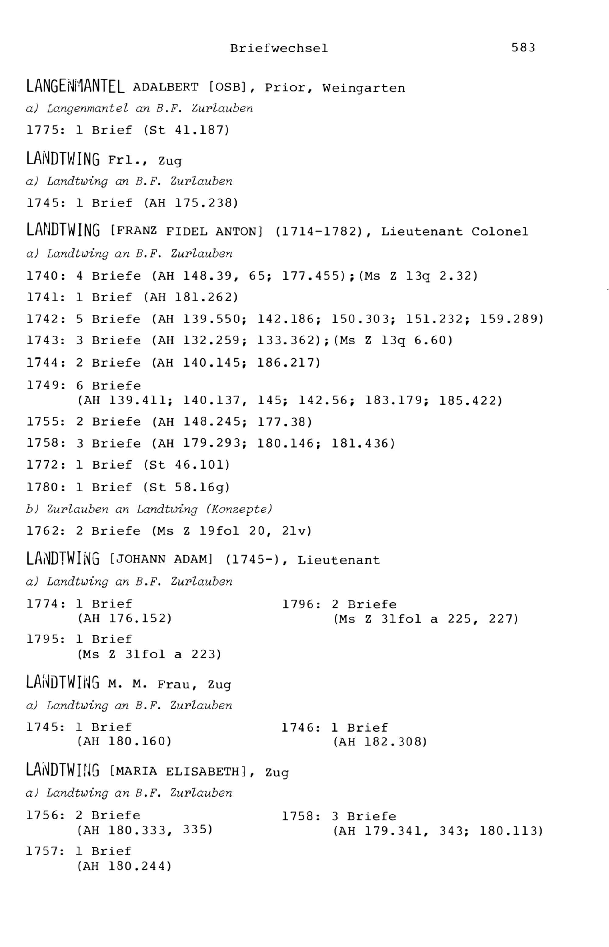 7. Der Briefwechsel von Beat Fidel Zurlauben