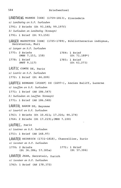 7. Der Briefwechsel von Beat Fidel Zurlauben