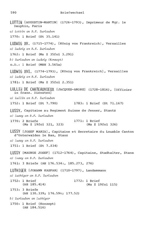 7. Der Briefwechsel von Beat Fidel Zurlauben