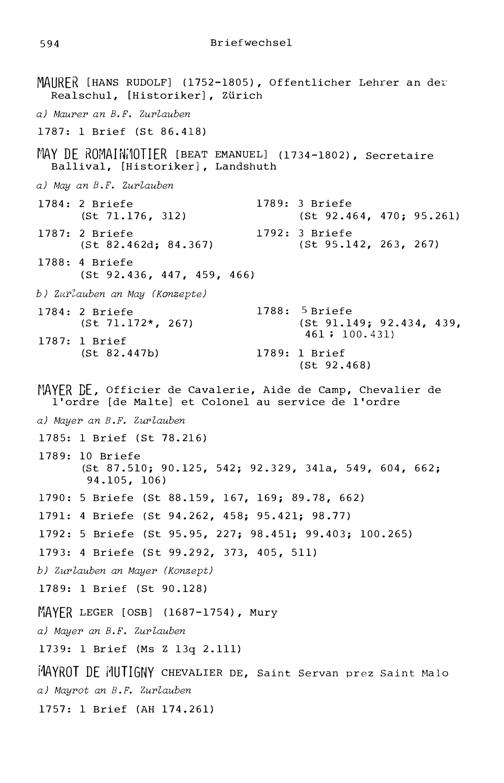 7. Der Briefwechsel von Beat Fidel Zurlauben