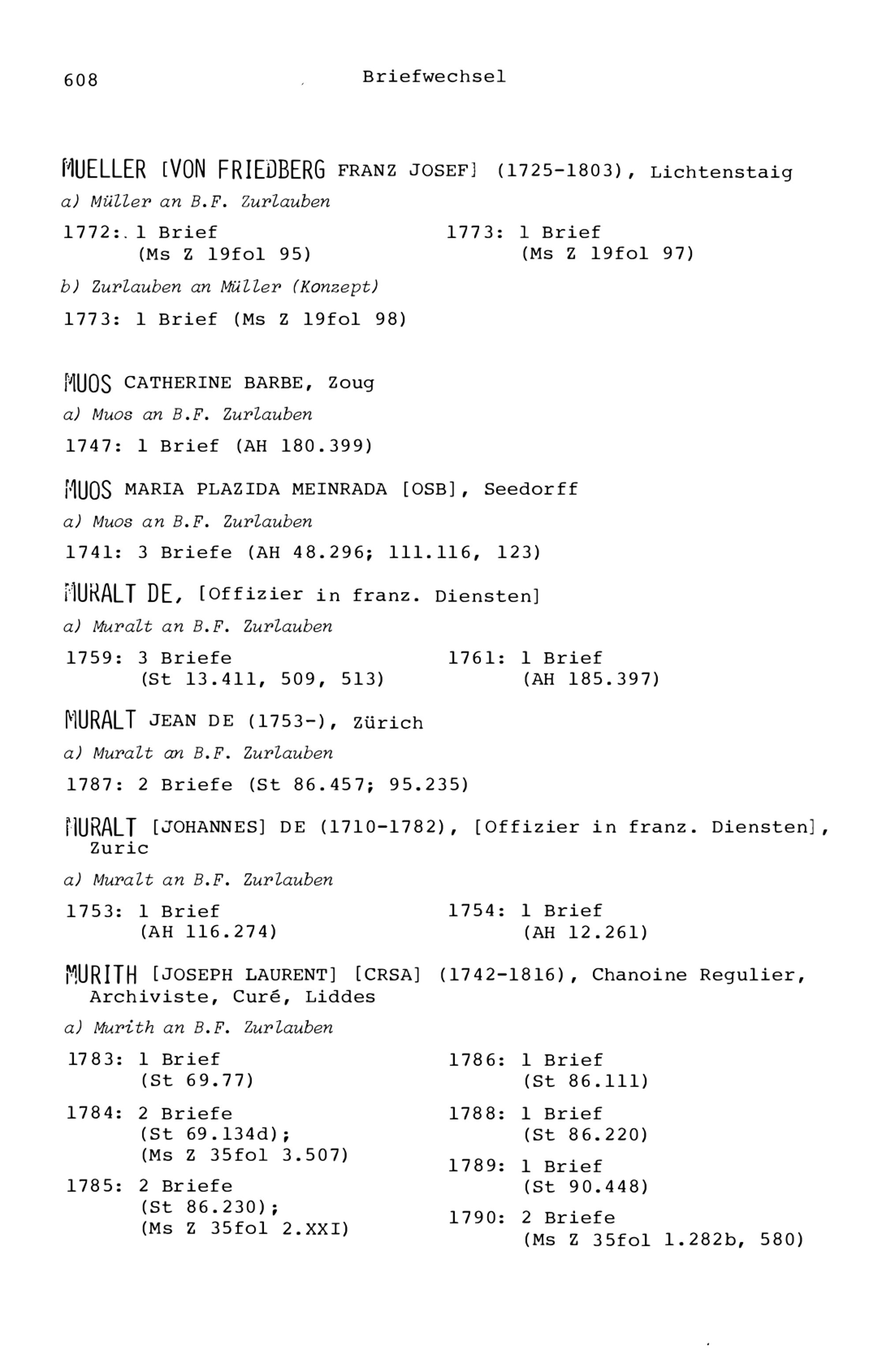 7. Der Briefwechsel von Beat Fidel Zurlauben