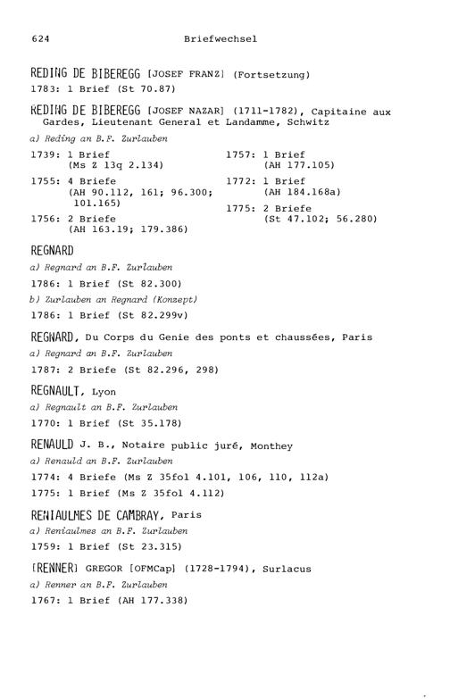 7. Der Briefwechsel von Beat Fidel Zurlauben