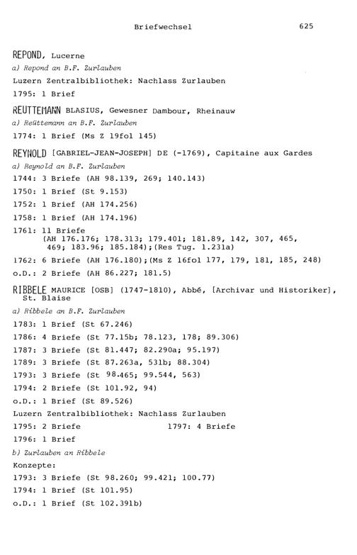 7. Der Briefwechsel von Beat Fidel Zurlauben