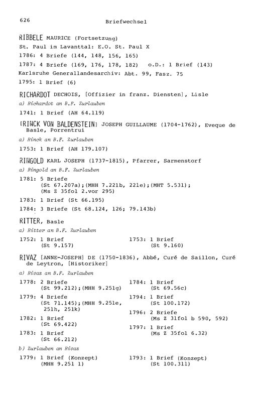 7. Der Briefwechsel von Beat Fidel Zurlauben