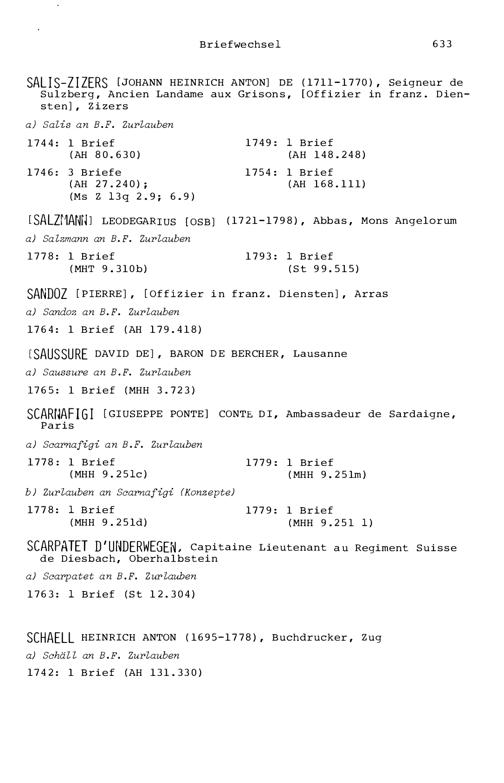 7. Der Briefwechsel von Beat Fidel Zurlauben