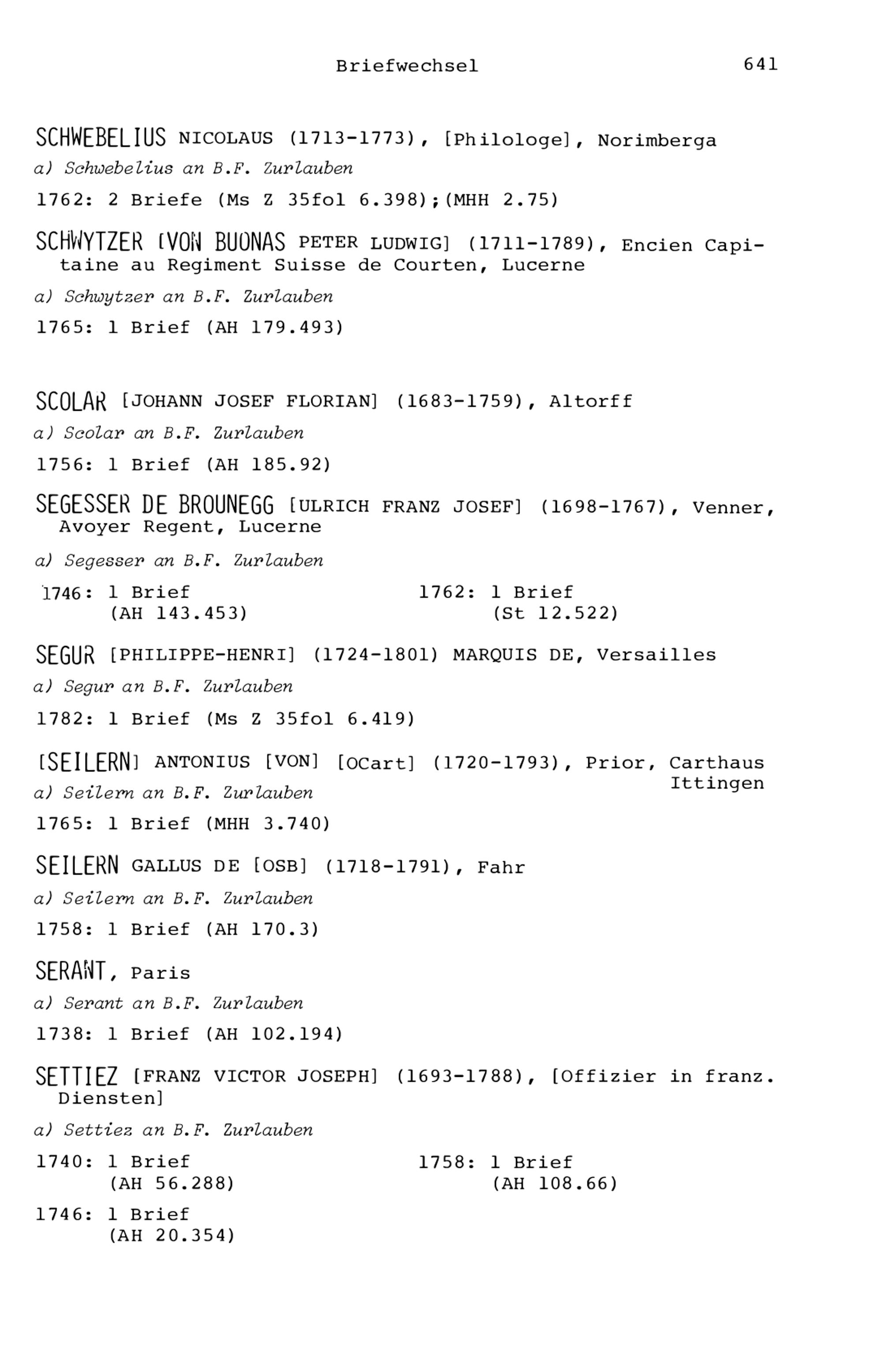 7. Der Briefwechsel von Beat Fidel Zurlauben
