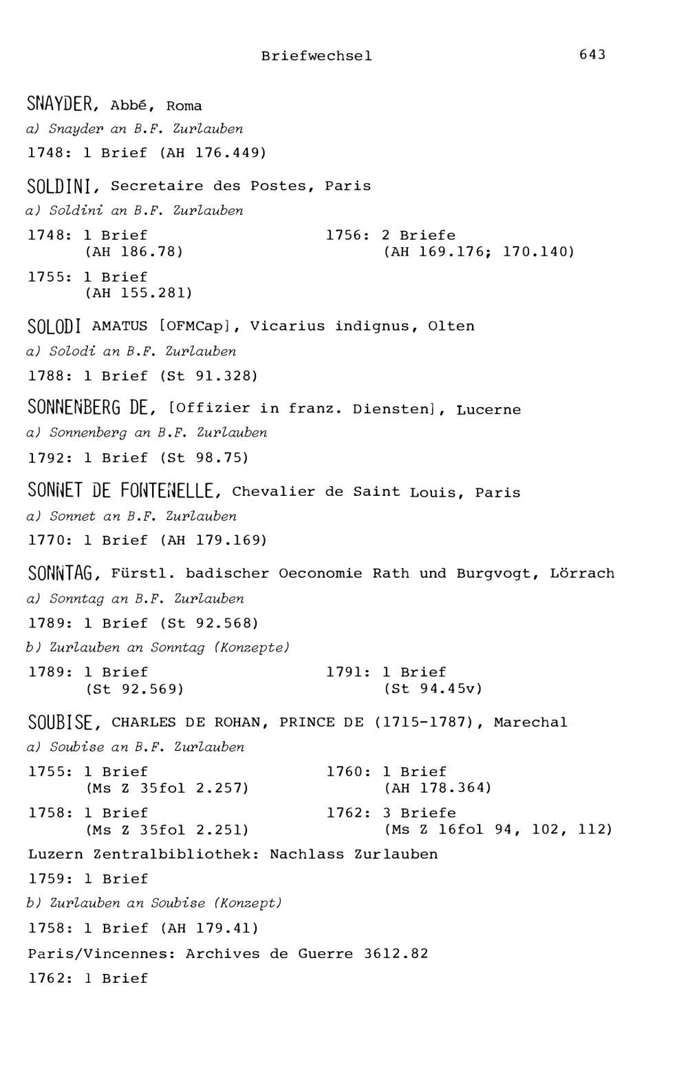 7. Der Briefwechsel von Beat Fidel Zurlauben