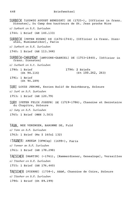 7. Der Briefwechsel von Beat Fidel Zurlauben