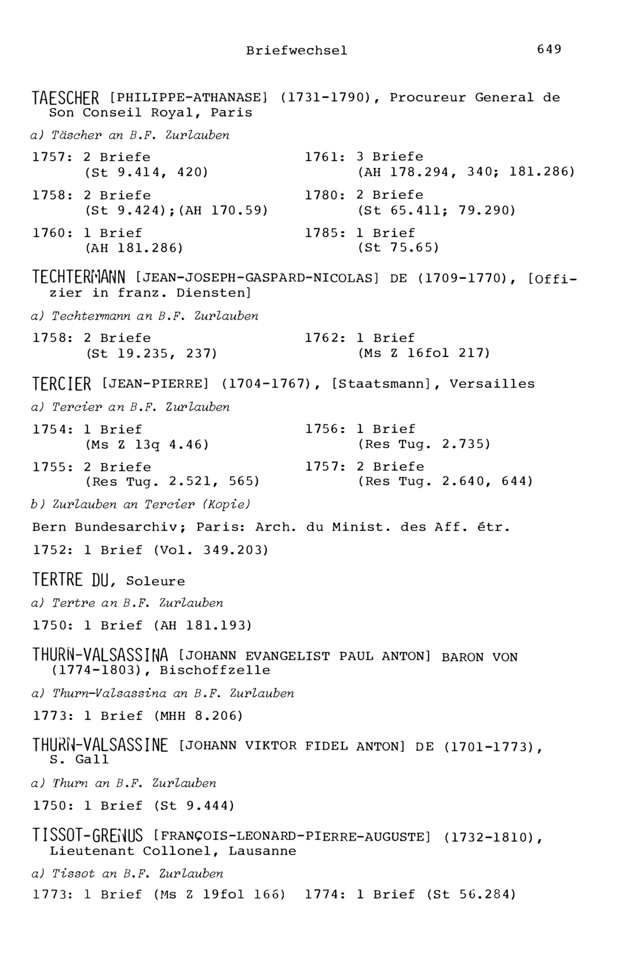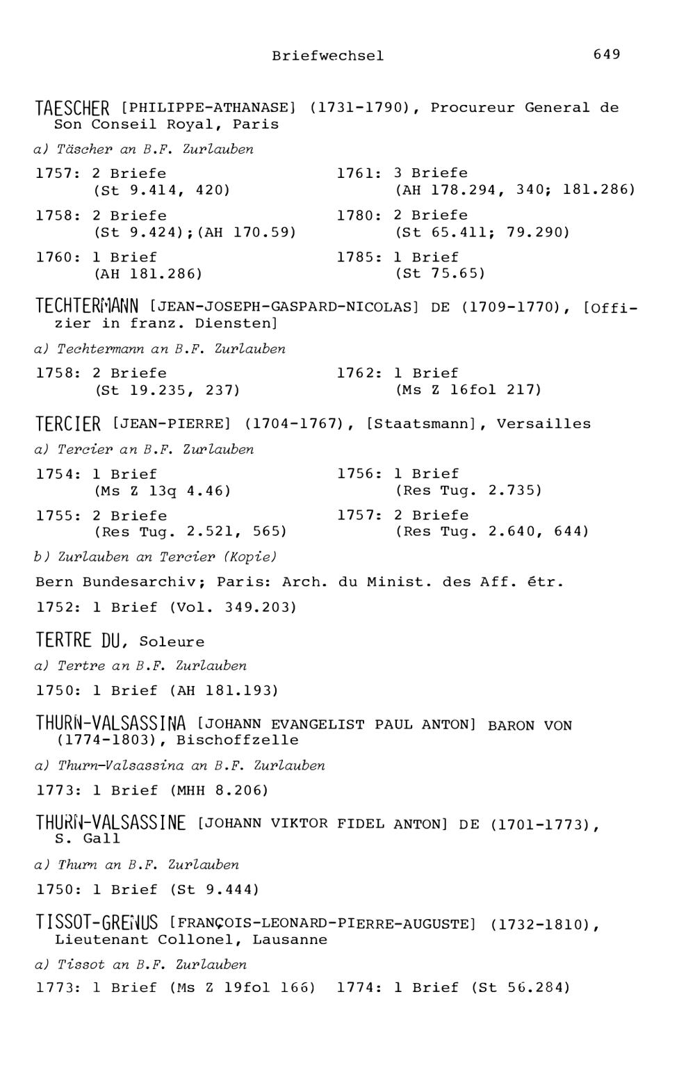 7. Der Briefwechsel von Beat Fidel Zurlauben