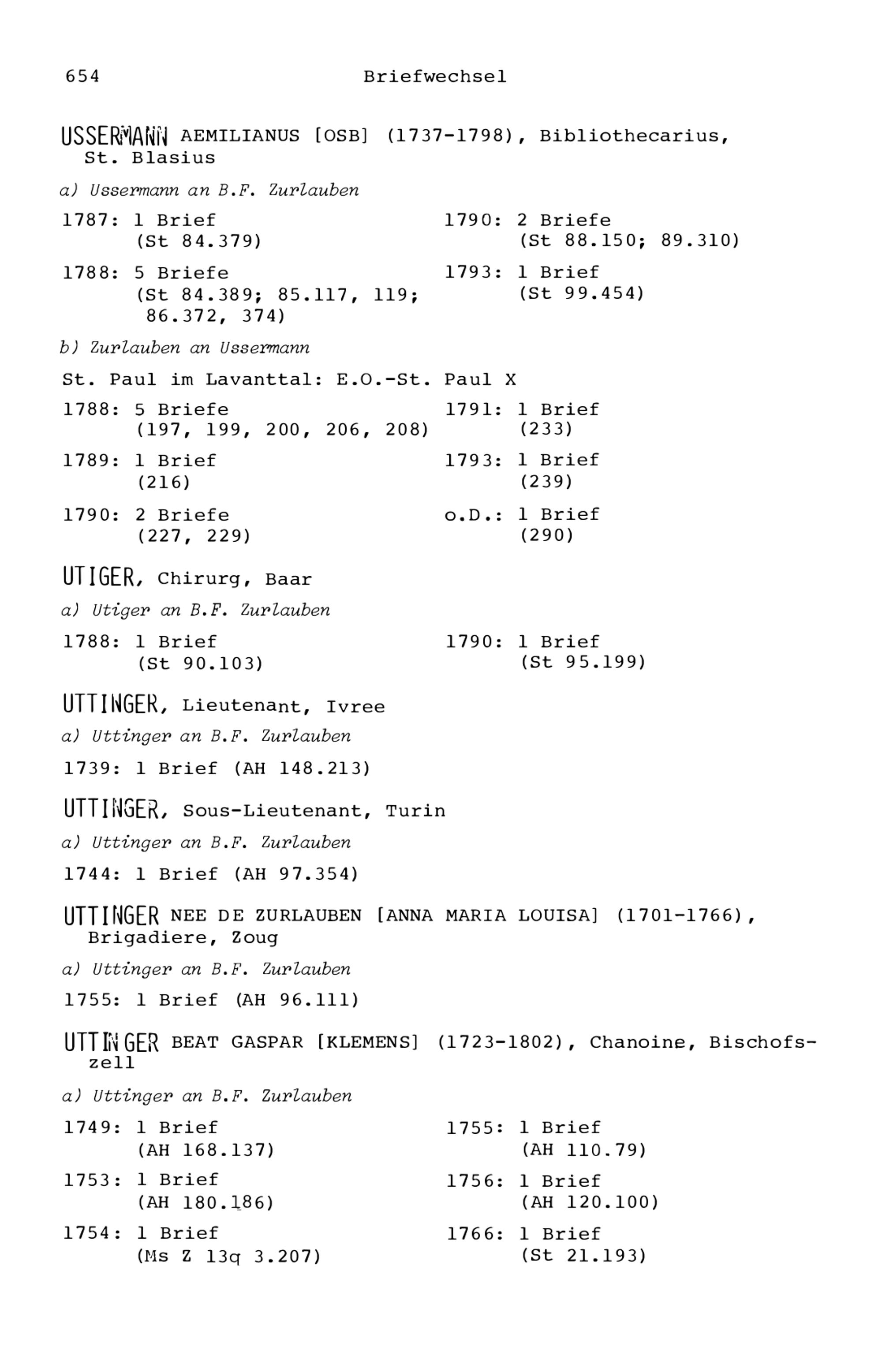 7. Der Briefwechsel von Beat Fidel Zurlauben