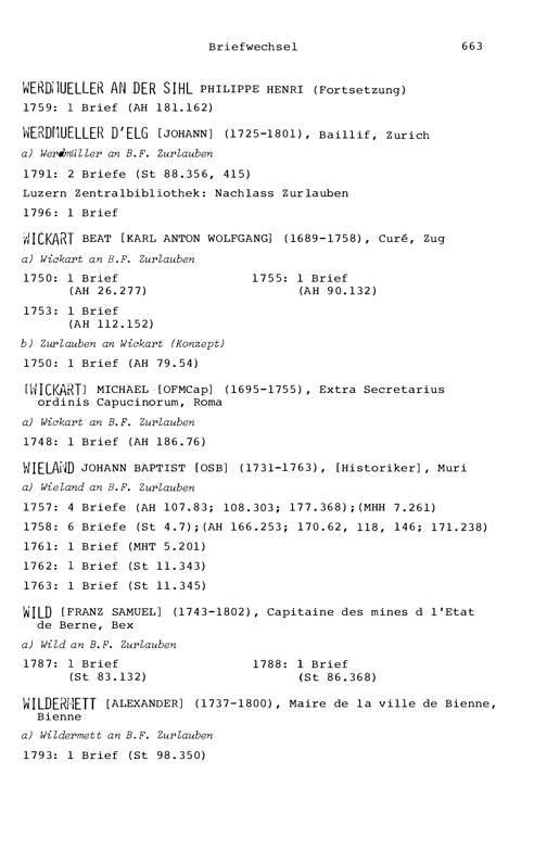 7. Der Briefwechsel von Beat Fidel Zurlauben