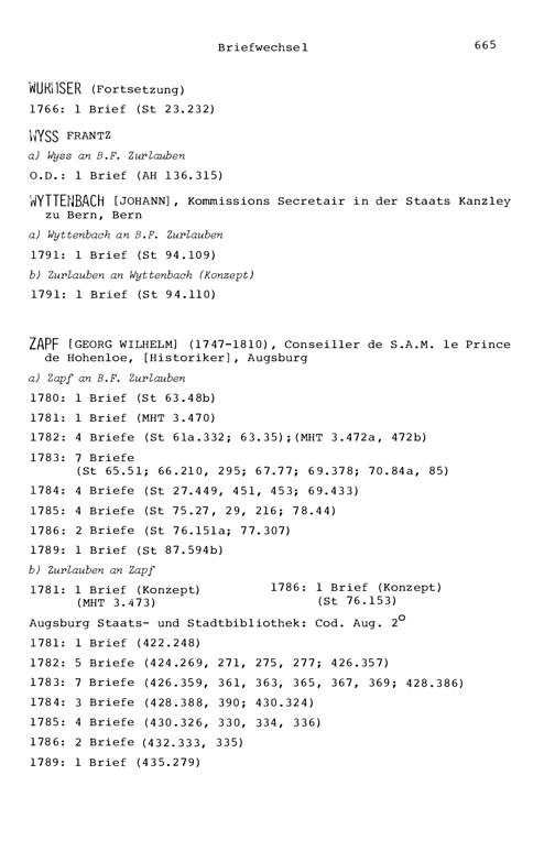 7. Der Briefwechsel von Beat Fidel Zurlauben