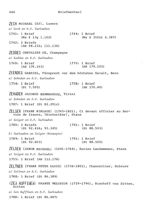 7. Der Briefwechsel von Beat Fidel Zurlauben