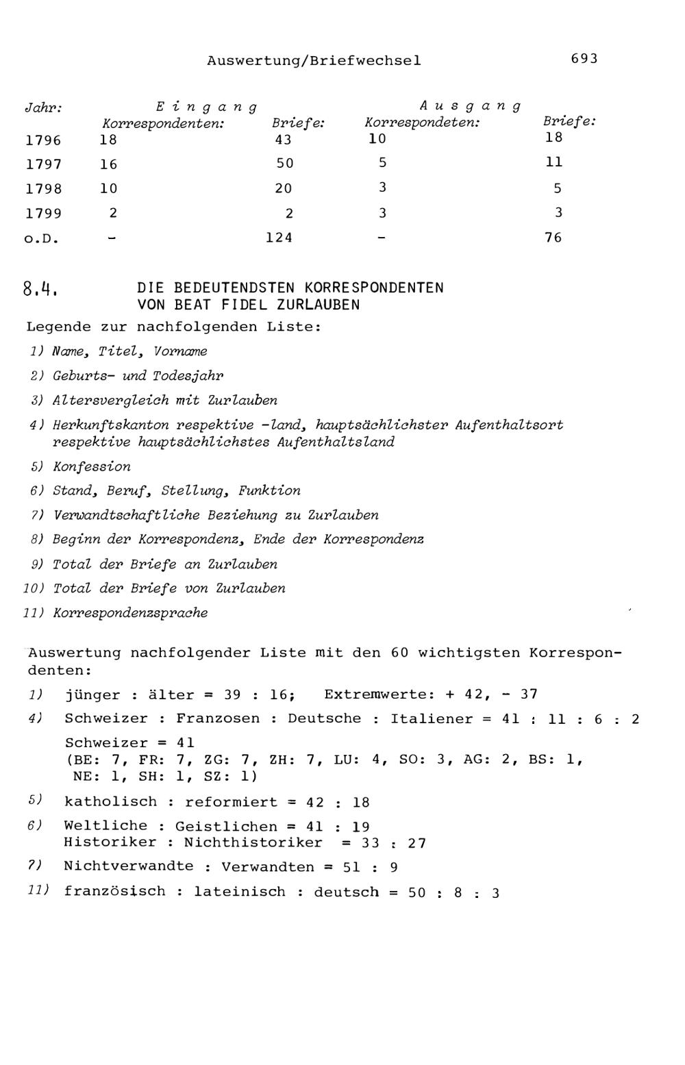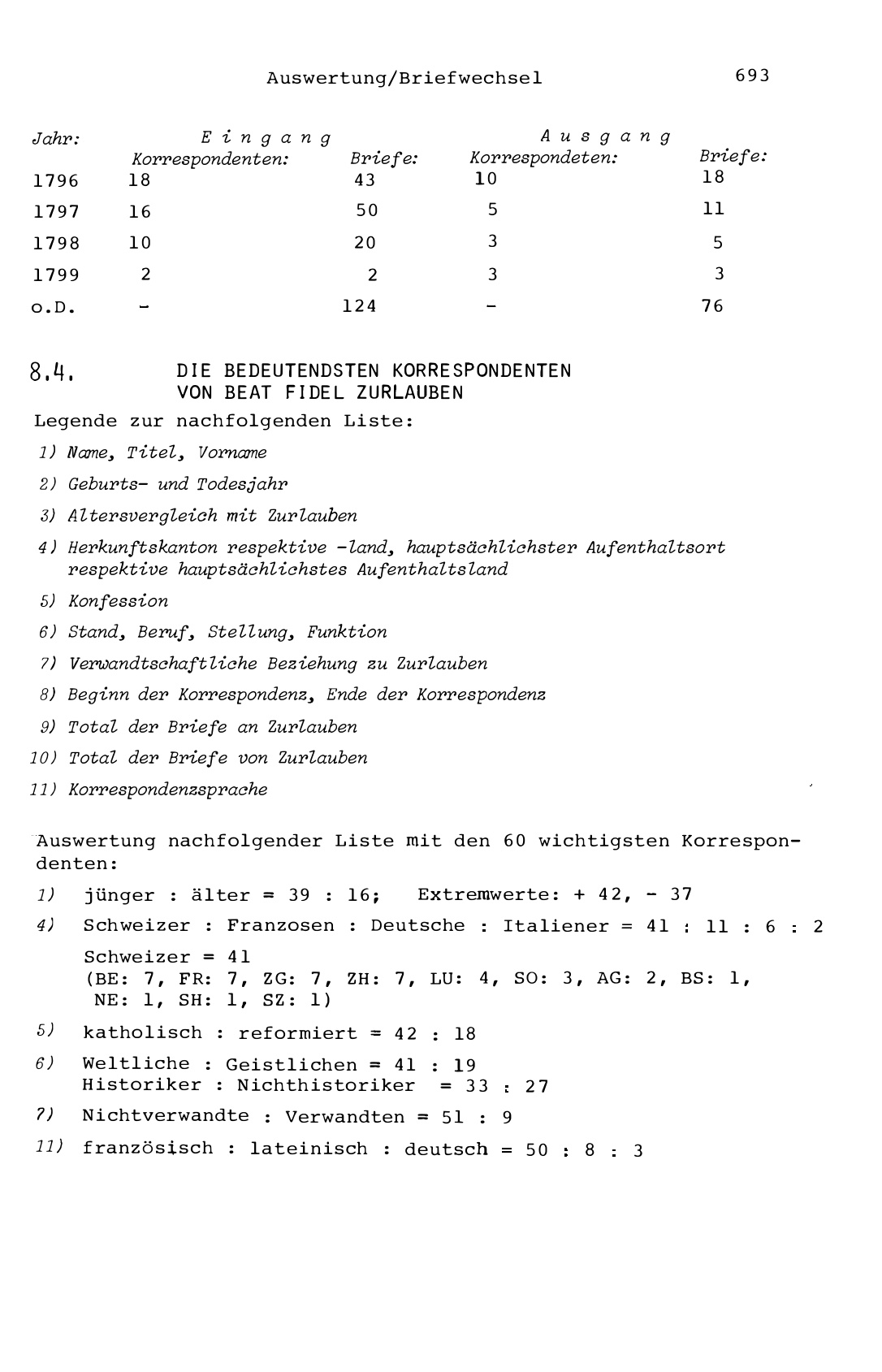 8. Die Auswertung des Briefwechsels
