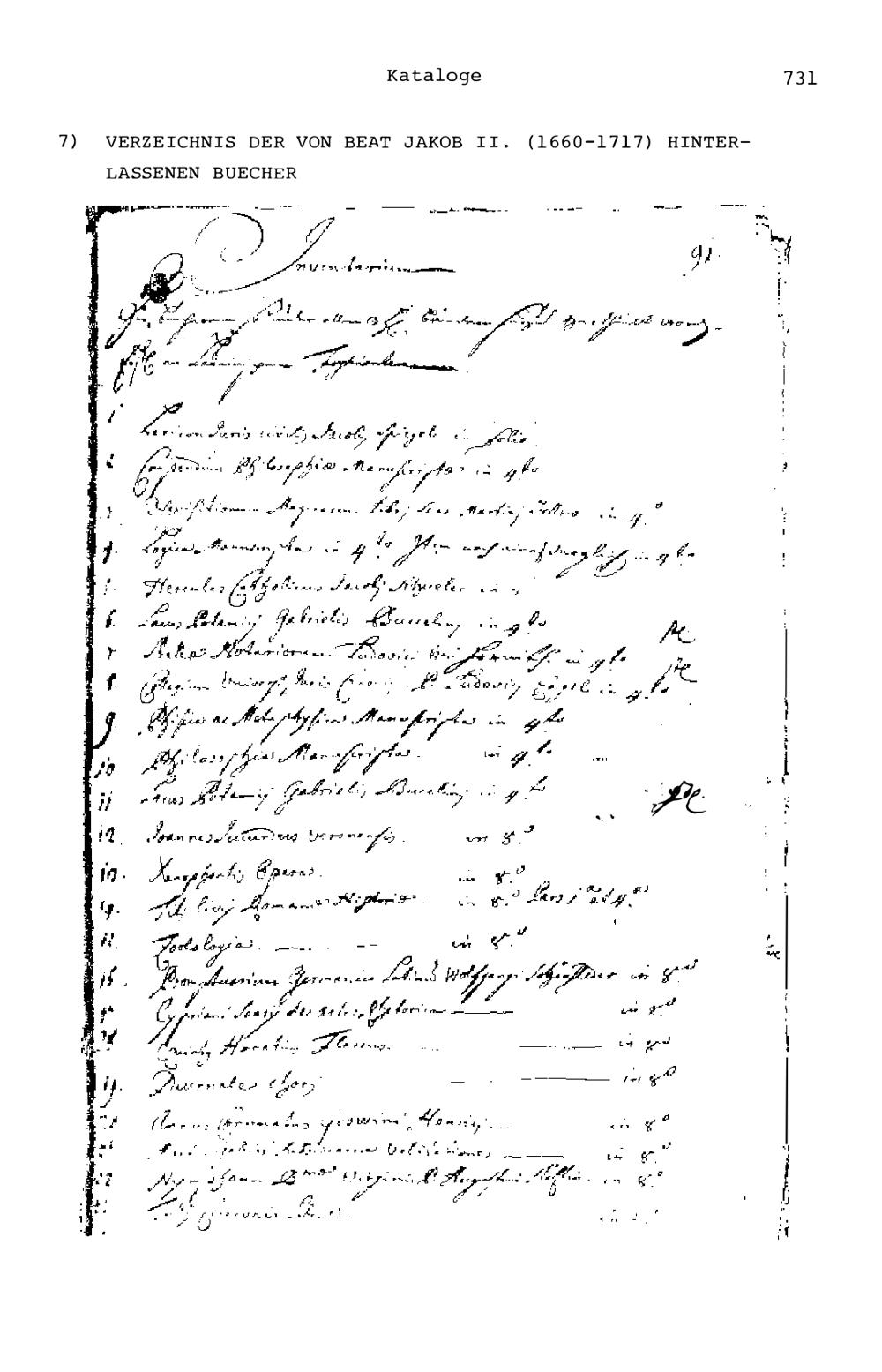 9. Abbildungen alter Bücherverzeichnisse über due Zurlaubiana