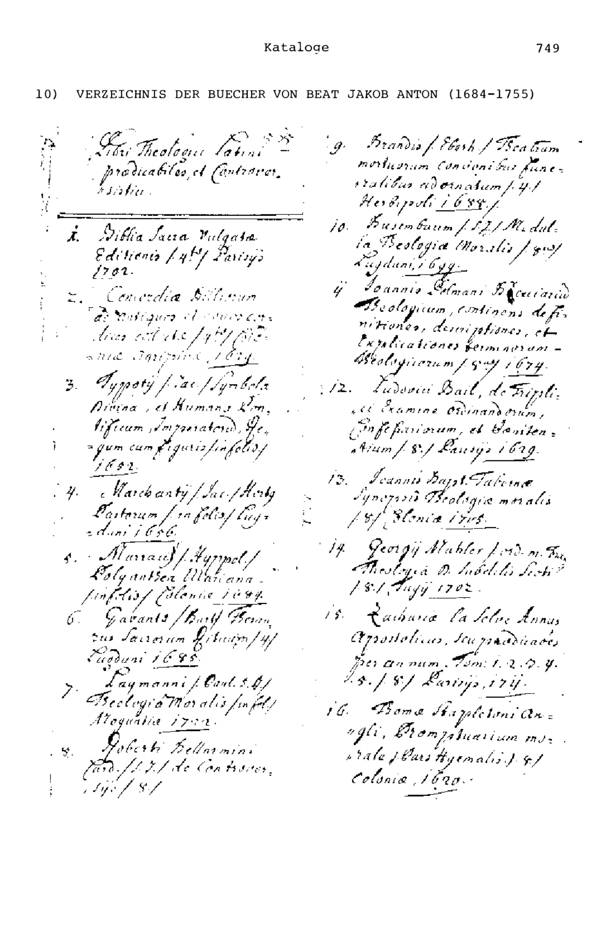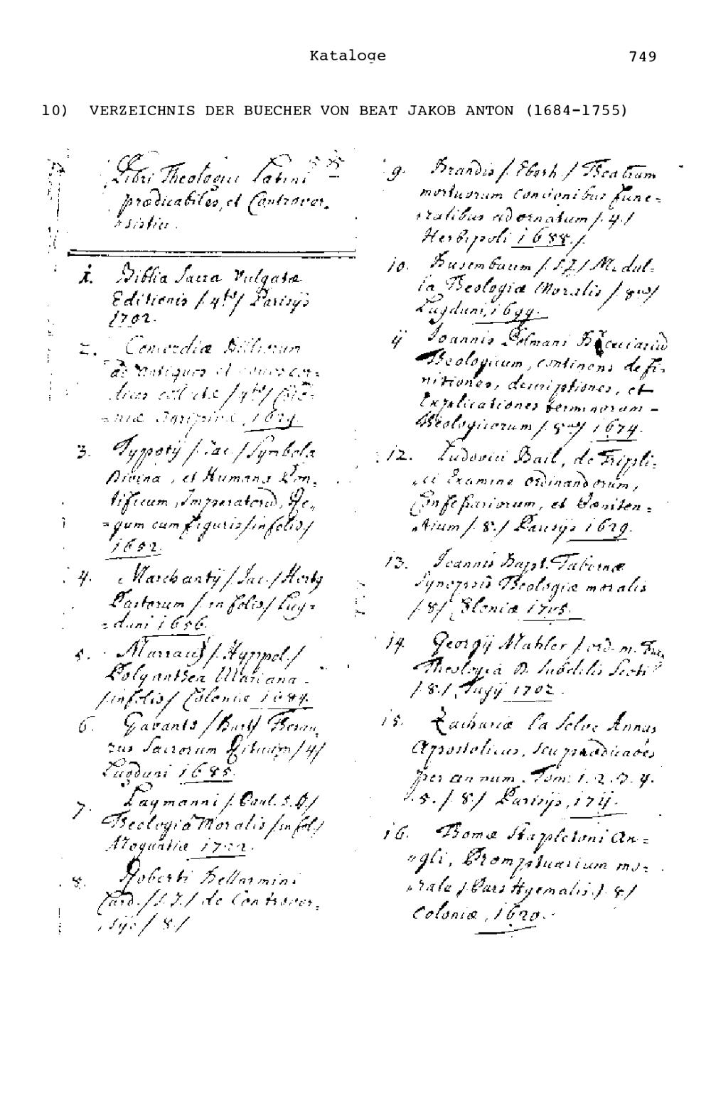 9. Abbildungen alter Bücherverzeichnisse über due Zurlaubiana