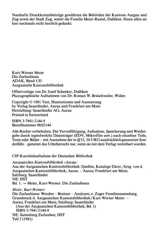 18. Die Buchgeschenke in resp. aus der Zurlaubiana