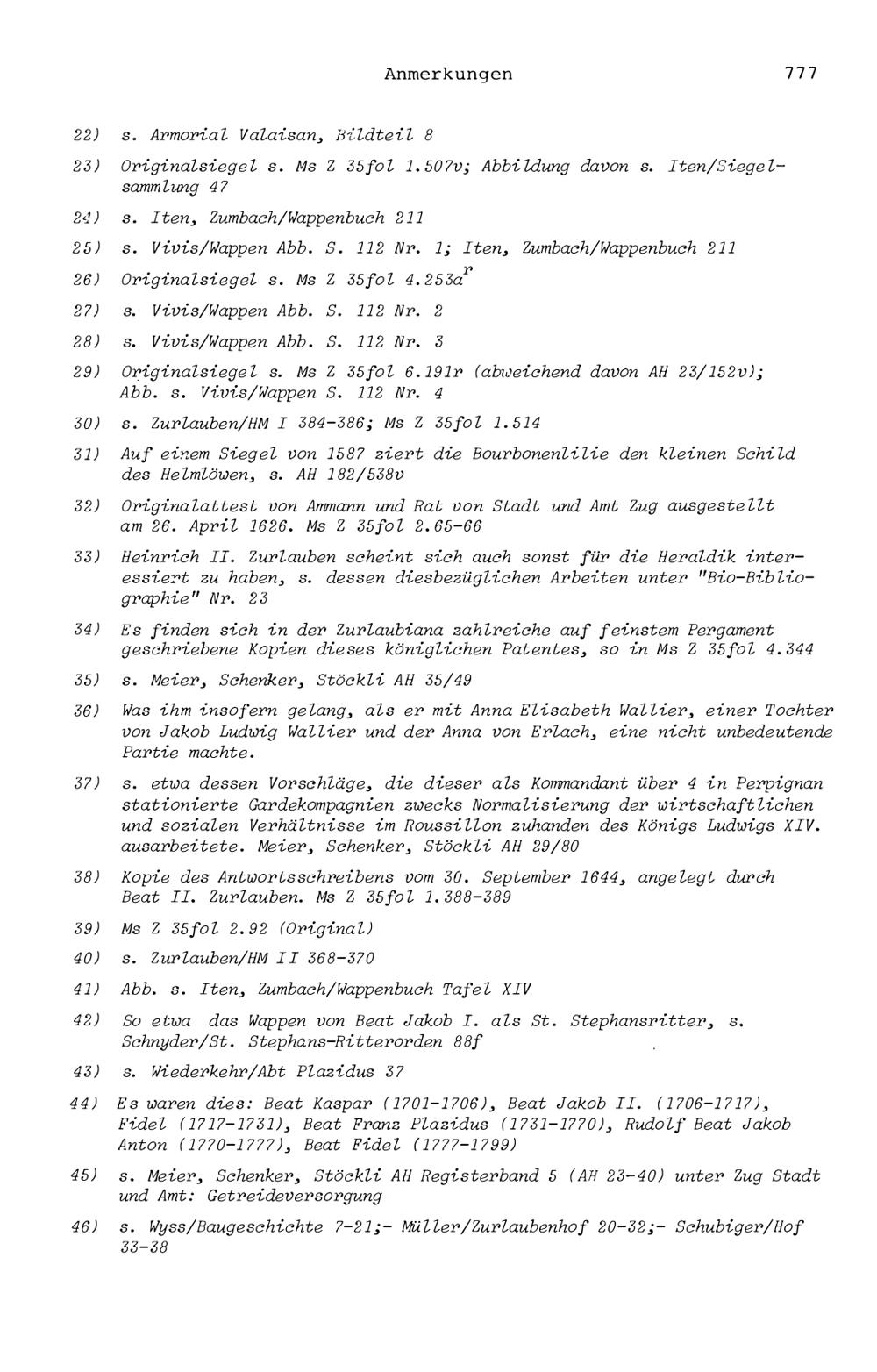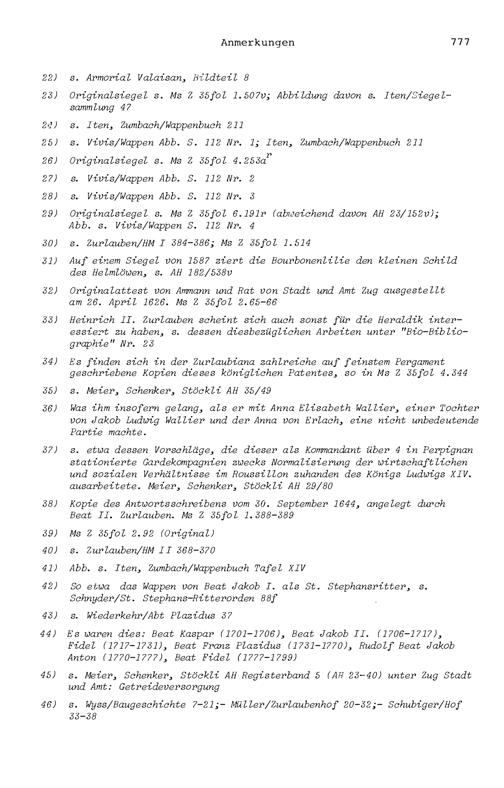 20. Bibliograohie der Arbeiten von Beat Fidel Zurlauben