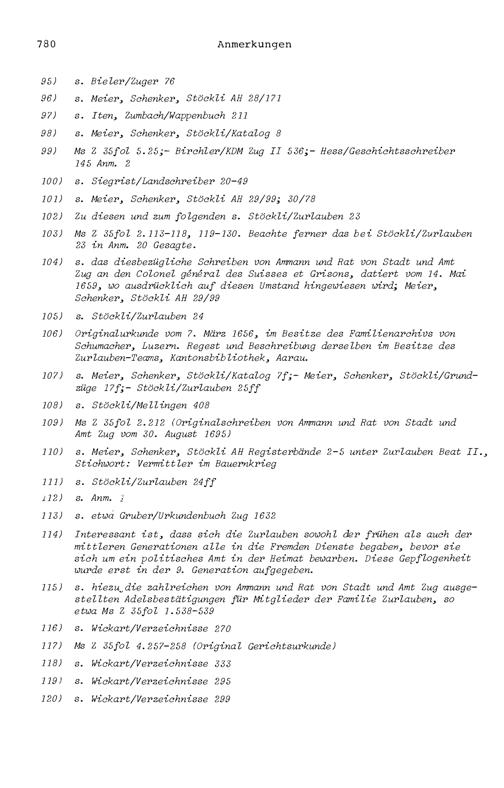 20. Bibliograohie der Arbeiten von Beat Fidel Zurlauben