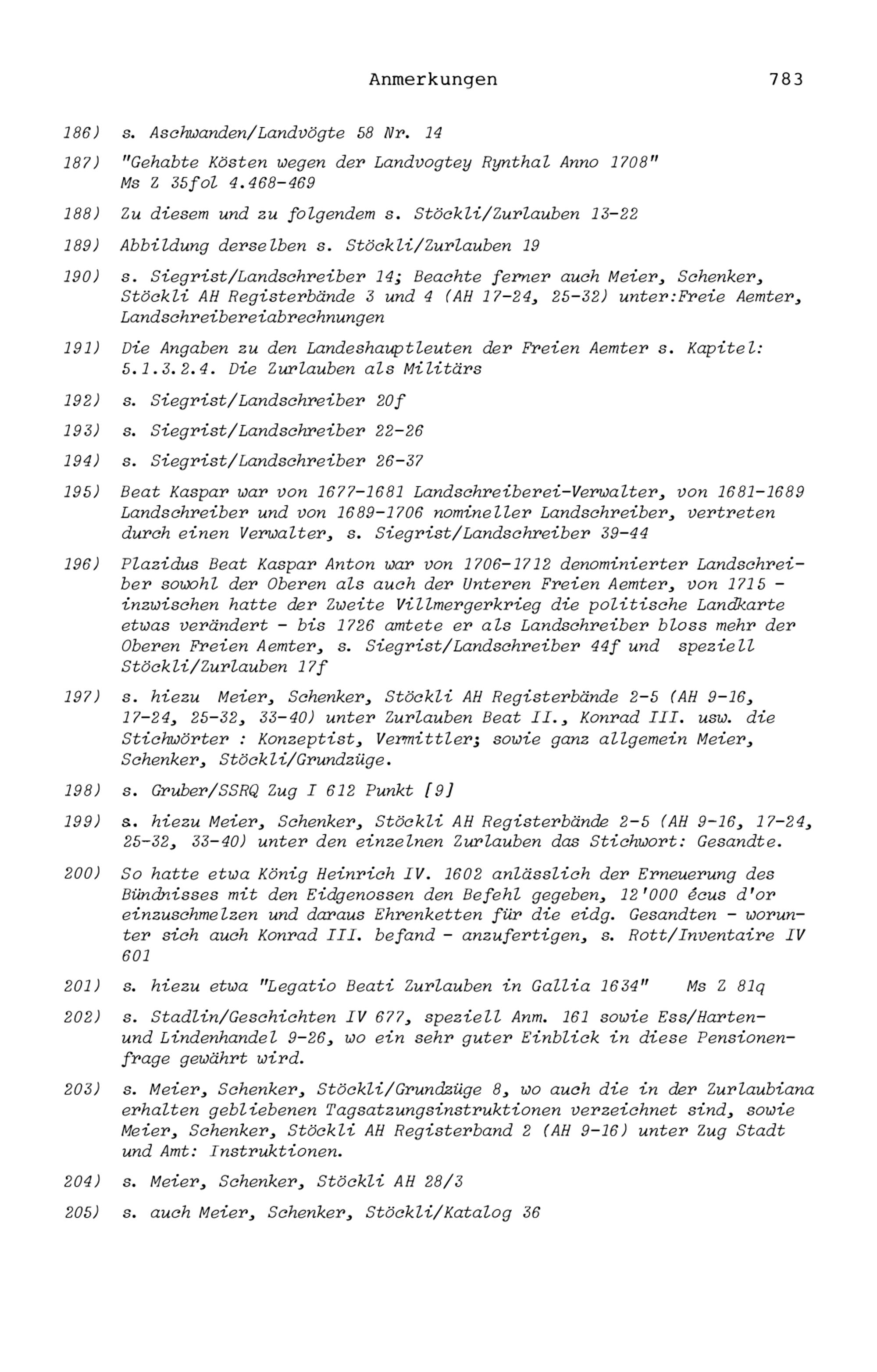 20. Bibliograohie der Arbeiten von Beat Fidel Zurlauben