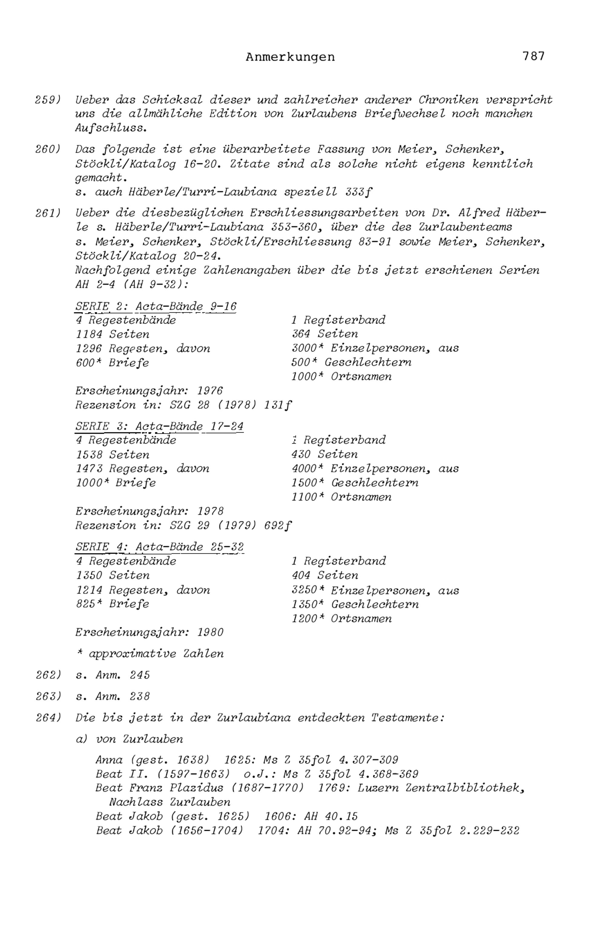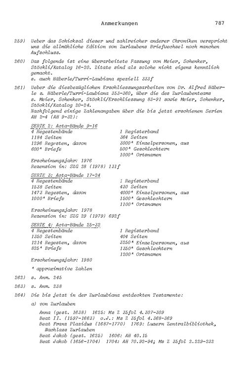 20. Bibliograohie der Arbeiten von Beat Fidel Zurlauben