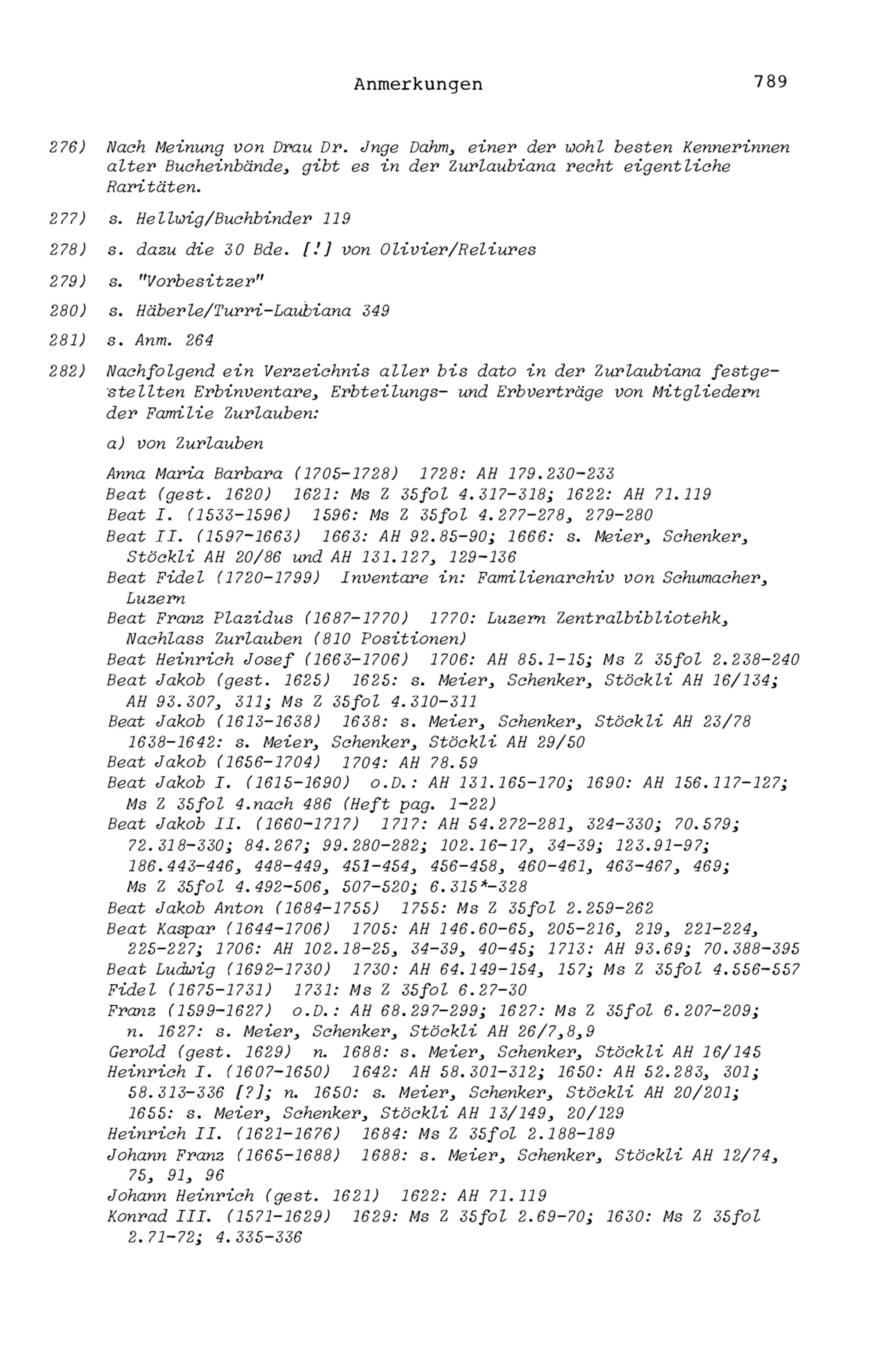20. Bibliograohie der Arbeiten von Beat Fidel Zurlauben