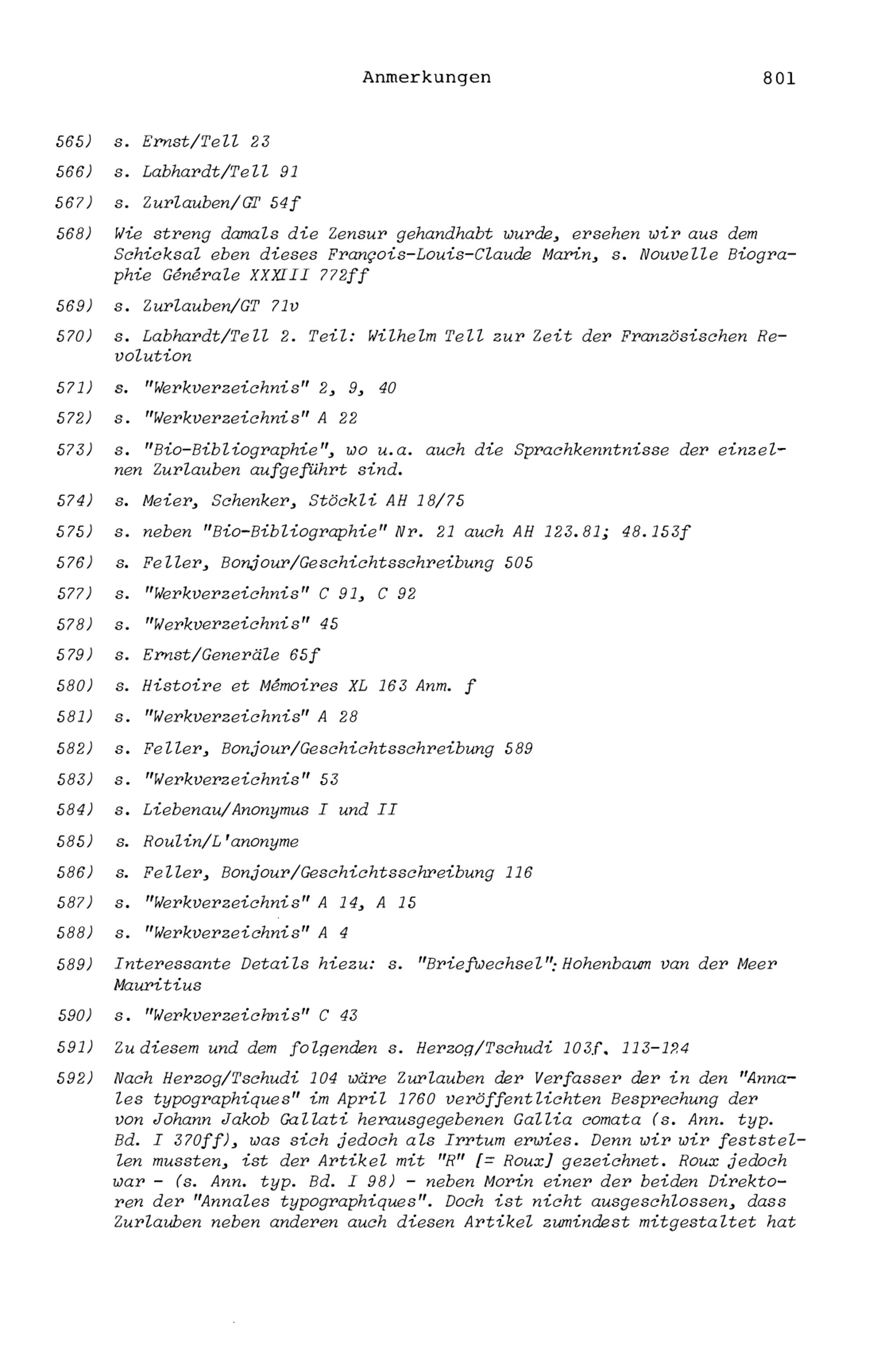 20. Bibliograohie der Arbeiten von Beat Fidel Zurlauben