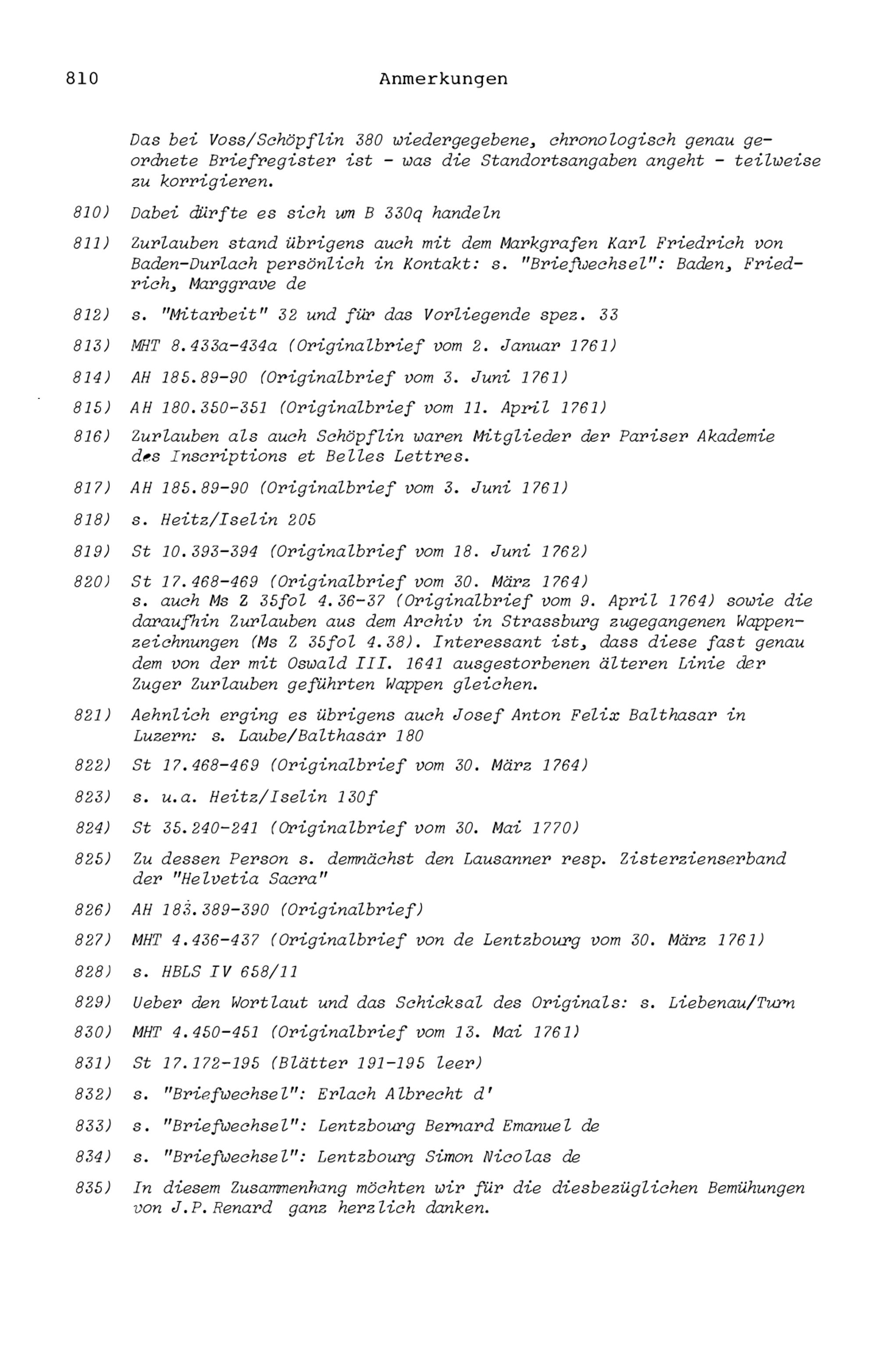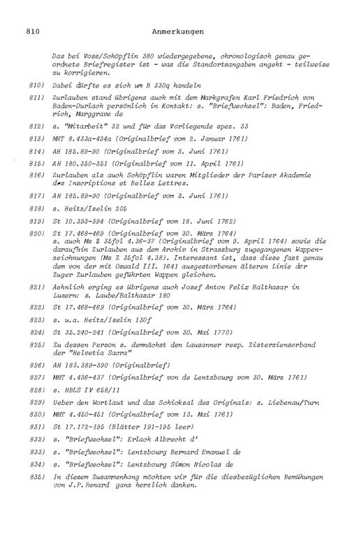 20. Bibliograohie der Arbeiten von Beat Fidel Zurlauben