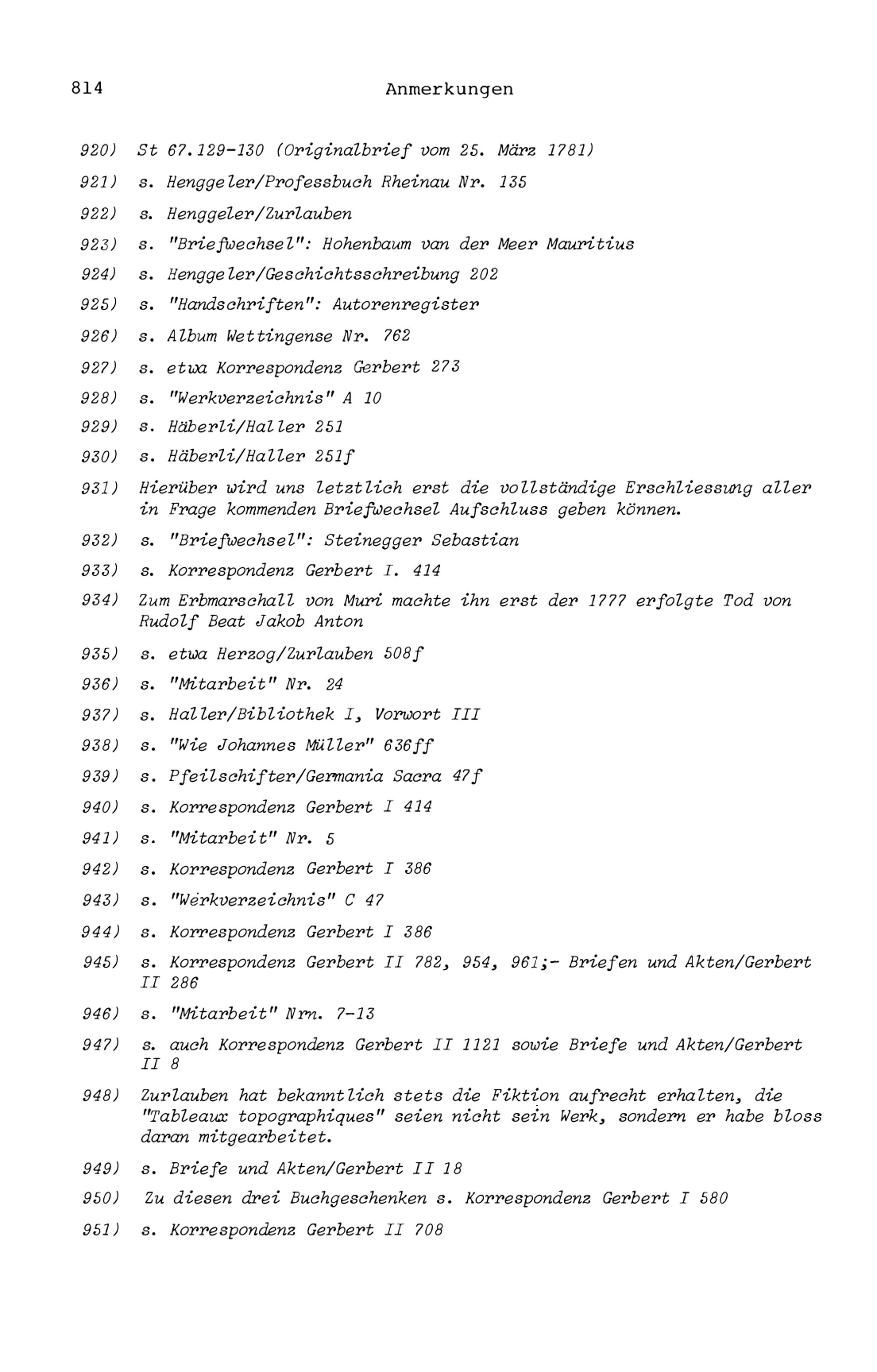 20. Bibliograohie der Arbeiten von Beat Fidel Zurlauben
