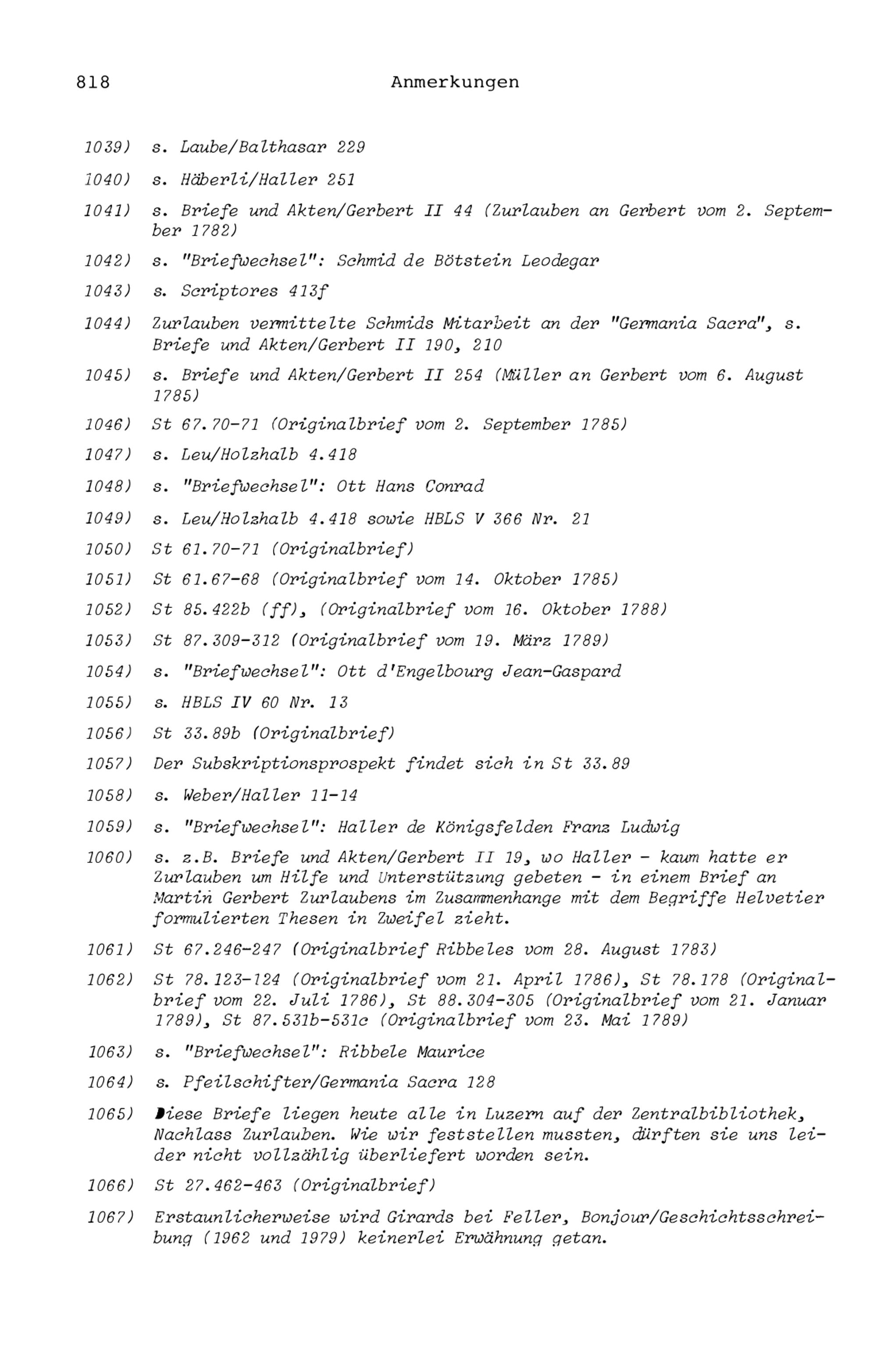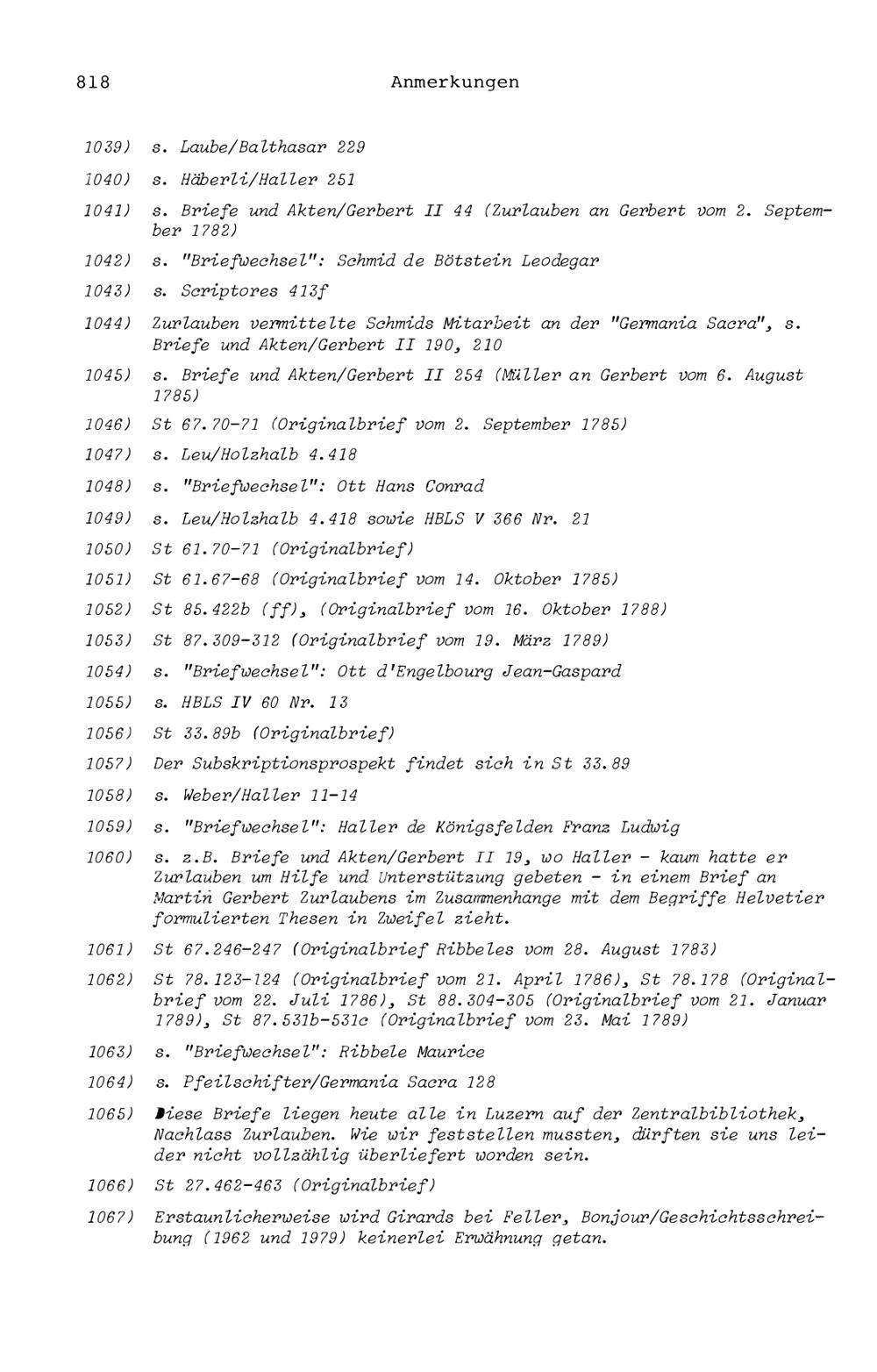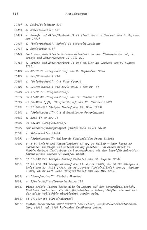 20. Bibliograohie der Arbeiten von Beat Fidel Zurlauben