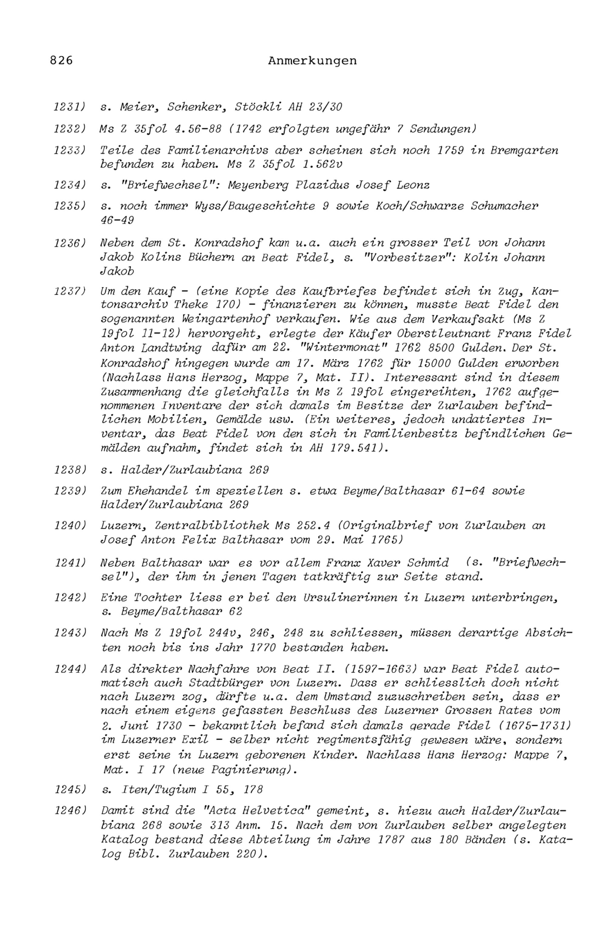 20. Bibliograohie der Arbeiten von Beat Fidel Zurlauben