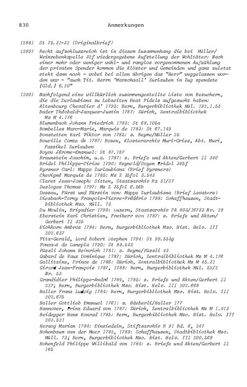 20. Bibliograohie der Arbeiten von Beat Fidel Zurlauben