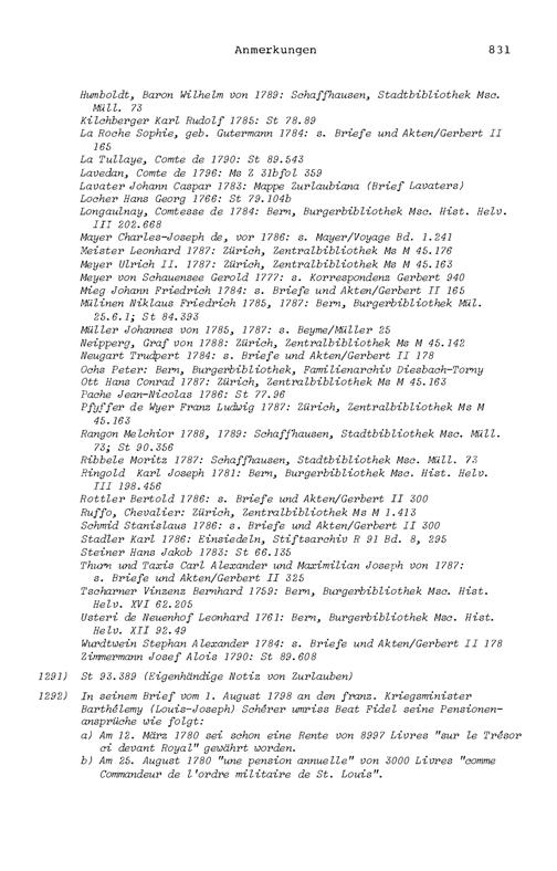20. Bibliograohie der Arbeiten von Beat Fidel Zurlauben