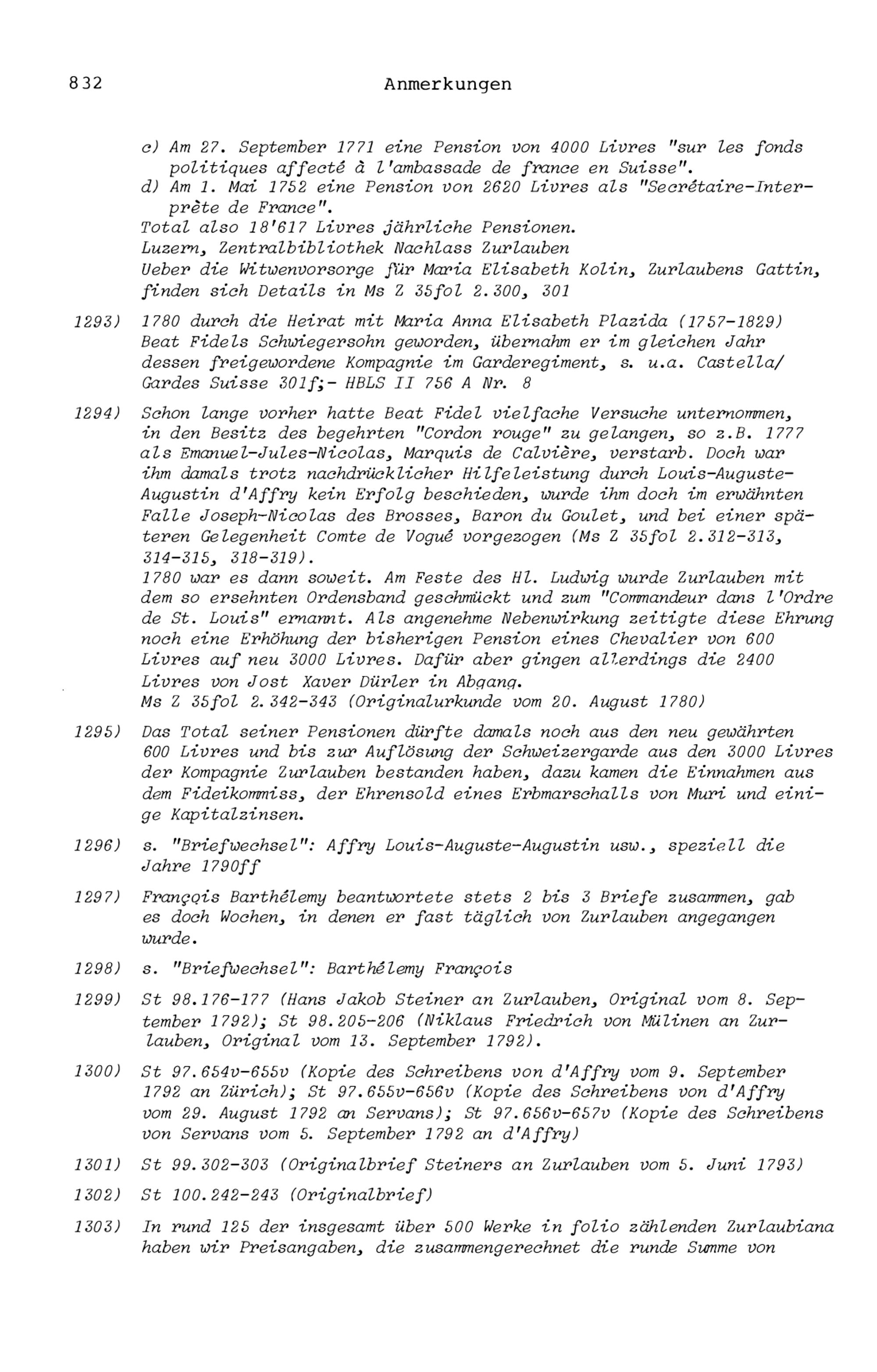 20. Bibliograohie der Arbeiten von Beat Fidel Zurlauben