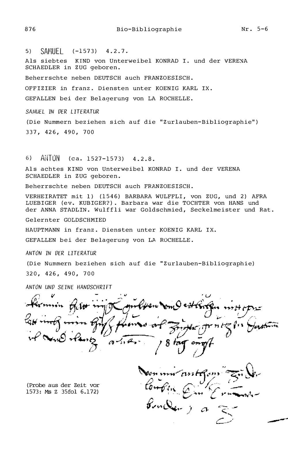 12. Bio-Bibliographie der Mitglieder der Familie Zurlauben