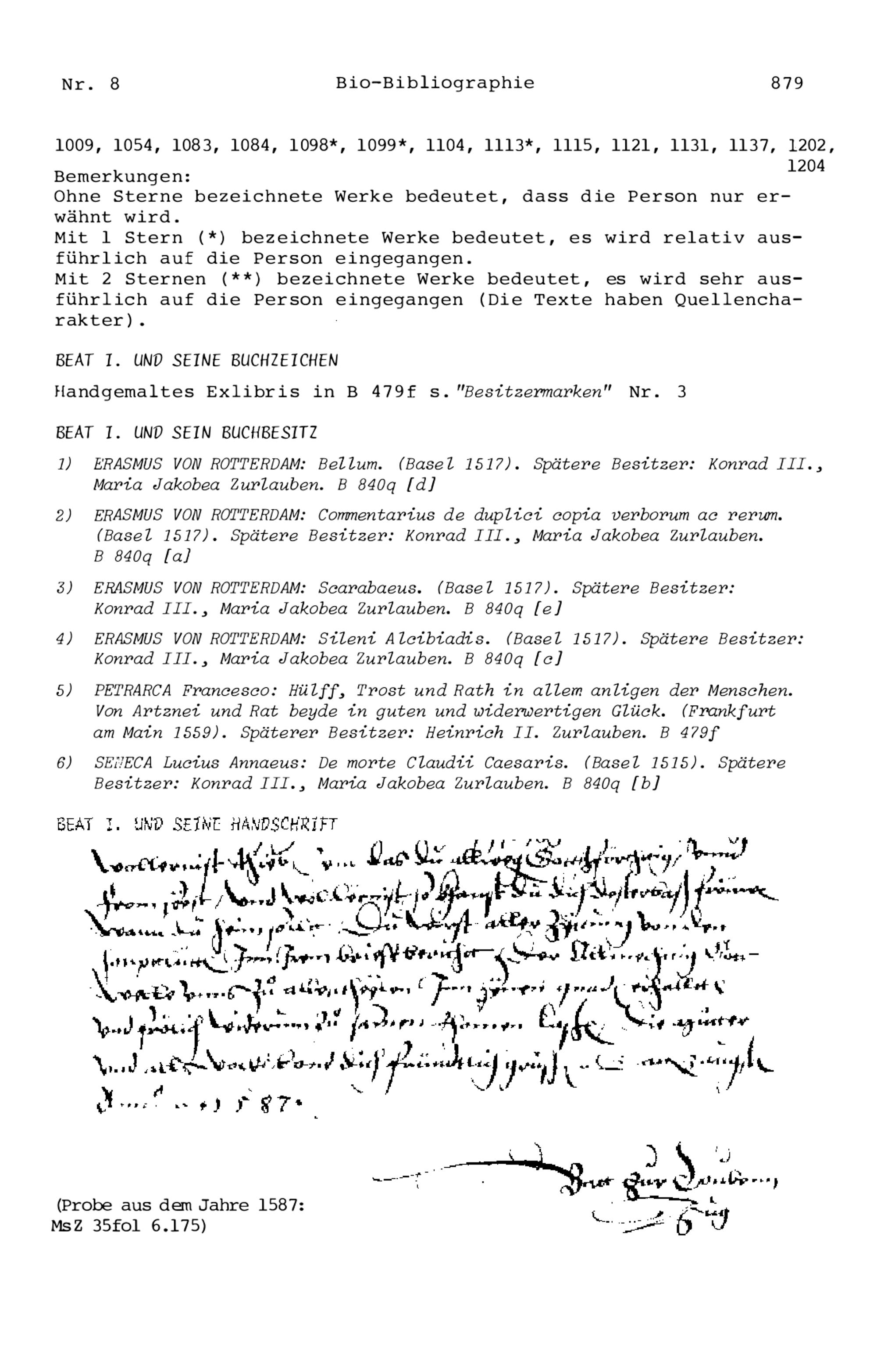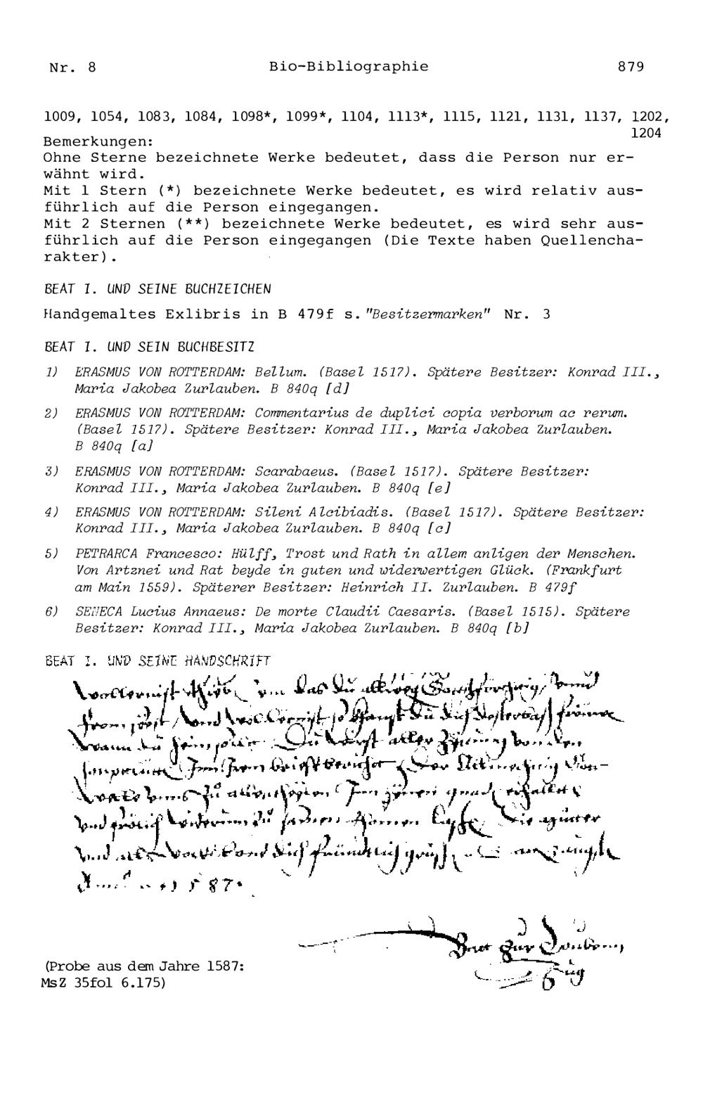 20. Bibliograohie der Arbeiten von Beat Fidel Zurlauben